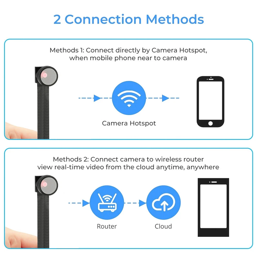 It is not allowed to use surveillance cameras to monitor and record others' privacy without their knowledge. Attention: 1. Item gift of 32GB memory card! 2. The camera has no built-in battery, you need USB cable for power supply use! Features: 1.【Mini Camera】This camera module is equipped with HD mini lens and can be used as a security camera to monitor your home or office. 2.【Micro SD Card Recording and Storage】With the app, you can view videos directly and download them to your phone. You can also insert a micro SD card for loop recording or timing (up to 32gb, gift ). 3.【Motion Detection】Features motion detection and smart alerts. When an object or person moves within the field of view, you will immediately receive a notification on your phone. It allows you to view events without delay and not miss any important moments. 4.【HD 1080P】This WiFi camera is very easy to use for anyone. It has also been fully updated in terms of performance 5 megapixels, 1080P resolution, can be viewed remotely via wifi, more exciting for you to discover. 5.【Remote View】 Connect the mini camera to your router's WIFI and then you can access your camera unit remotely. By using the free camera app, you can view your house/kids/pets/babysitters from your cell phone anytime, anywhere. It allows you to live stream from anywhere to capture 1080p/30fps super clear pictures/videos of your home/office/store or anything you want to care about. Specification: *Product Name: WiFi Camera *Product Color: Black *Resolution: 1080P *Video format: avi *Recording frame rate: 30 fps *Lens Viewing Angle: 120° *Photo function: support *Motion Detection: Support *Microphone: Built-in *Power supply: USB *Operating Power: DC 5C/1A *Support network: 2.4Ghz wireless Internet (not support 5G) * Maximum support 32GB Micro SD card (Gift 32GB Card) *Supports simultaneous recording and loading. *WiFi function: Yes, remote viewing via smartphone anytime, anywhere *Application: iWFCam *Operating system: support iphone or android phone Packing list: 1*Mini Camera 1*User manual 1*32GB Card ( gift ) On Dec 16, 2024 at 01:23:17 PST, seller added the following information: