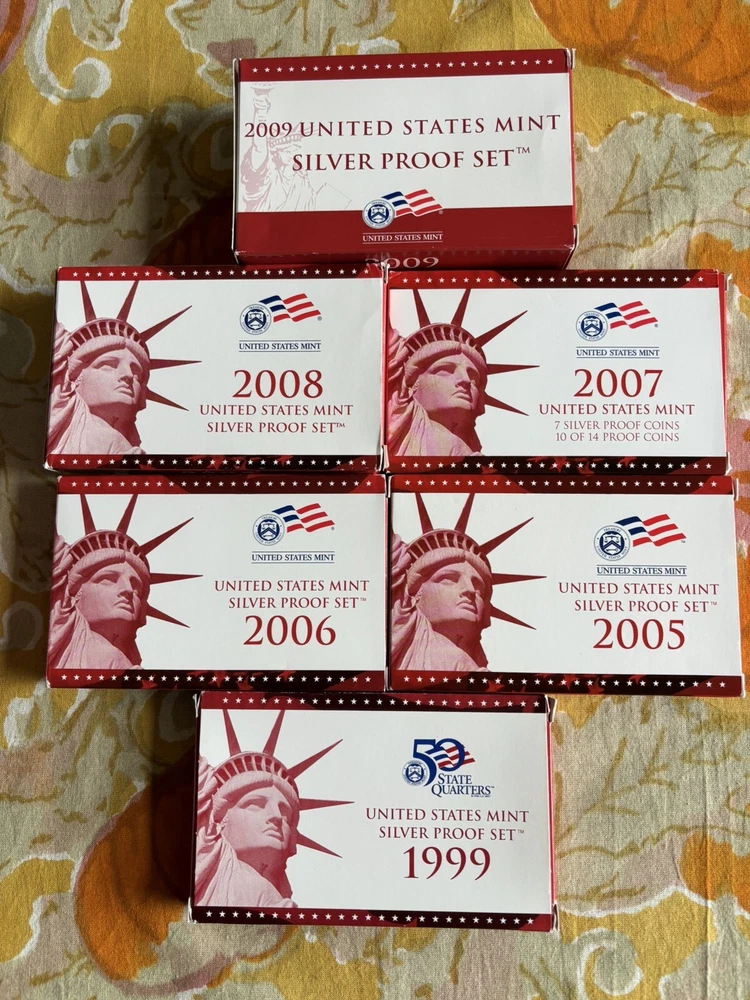 This is a lot of 24 US Mint Silver Proof Sets ranging from 1992 to 2019. Each set includes a Certificate of Authenticity and Original Government Packaging. The sets are uncirculated and composed of silver. The proof coins are minted in San Francisco and certified by the U.S. Mint. See the photos for the specific years included in the lot as there a duplicates.