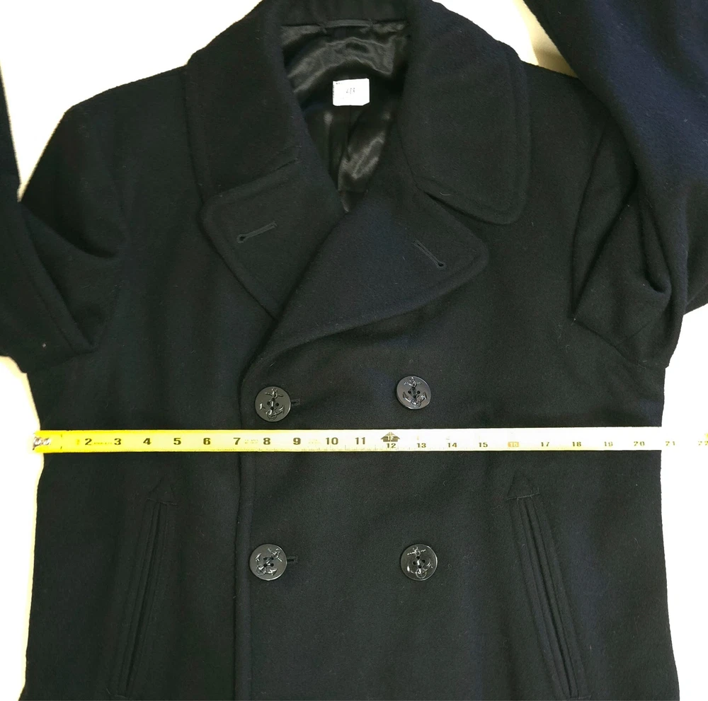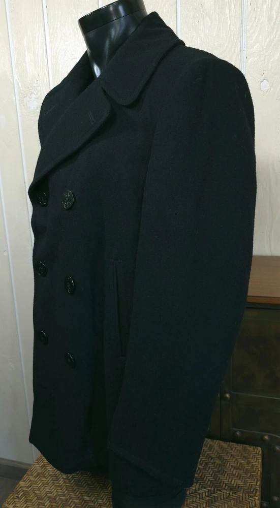 An Incredible one time opportunity to own this US Navy Peacoat Triton Mfg Men's 40R Black Wool Enlisted Military Overcoat ***No remarkable defects ***PIT TO PIT IS 20-3/4 in **AS IS ***NO RETURNS ***VIEW ALL MEASUREMENT PHOTOS FOR PROPER FIT**** Explore the in depth photos showing every angle possible as if you have it in your hands. Thank you from all of us at DPEXPRESSHOP ***Note 1: Display stands not included with all items unless specifically stated in the title. ****Note 2: DPEXPRESSHOP carries a diverse collection of brands in this category, so we take a pit to pit measurement photo. ~~~~~~~ITEM IN LISTING PHOTOS IS THE ITEM YOU WILL RECEIVE~~~~~