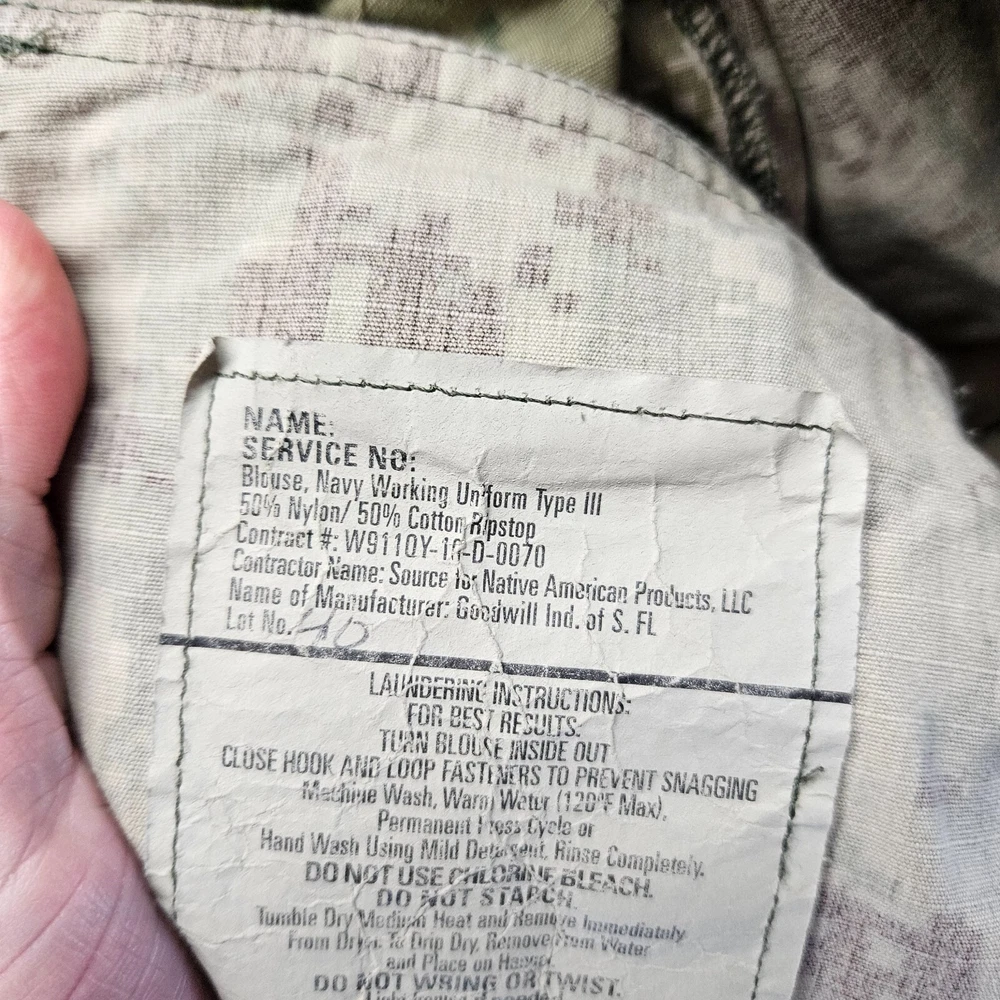 US Navy Working Uniform Type III Blouse Shirt Size Small Regular Green Digi Camo