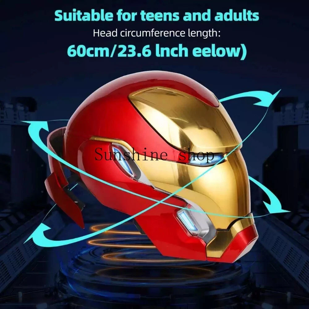 Product Details Product Name: MARK50 1/1 Wearable Collectible Helmet Product Type: Finished Product Scale: 1/1 Material: ABS Wearable head circumference: within 60cm Function description: 1. Support three ways to control the helmet. 【①touch sensing】;【②remote control】;【③Chinese and English voice control】 2. With voice command dialogue control function, you can use specific keywords to have a simple voice dialogue with the helmet 3. There are two opening and closing methods [normal opening and closing] & [split opening and closing] 4. On the basis of film and television, according to the original settings, 4 original light-emitting sites have been added, [Armor Auxiliary Power Supply]. 5. The electroplating drawing process is used to fully restore the details of the helmet collection film and television props