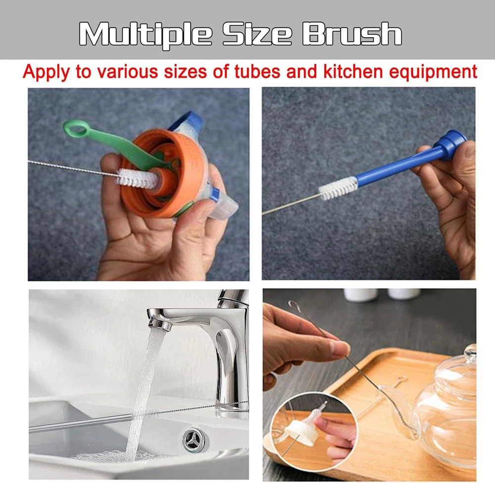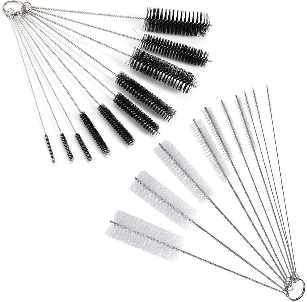 Description: This product contains 1 set of 10 tube brushes with varying diameters. You can always find a fit tool when cleaning gaps, dead angle places. Easy to get into hard-to-reach spaces, and no more remaining dust in your life. All brushes are 200mm long, dishwasher safe, and constructed with stainless steel and nylon bristles. This set of 10 brushes comes with a detachable key ring for quick and easy access. All brushes have a convenient loop at the end of the handle to hang when not in use or to reattach to the key ring for safe keeping. And each end of the brush has conservatory design, which provide you more safety. Not only prevent scratching the items, but also protect you from hurting yourself when cleaning. The brushes come with appropriate hardness. Don't worry about scratch your items when cleaning any more, such as glasses, jewelry, cell phones, etc. Made of stainless steel and nylon bristles, safe to wash dishes and drink straws. Well-made nylon bristles is also not easy to pluck. Material: Nylon stainless steel Color: Black/White Specifications: This product contains 1 set of 10 tube brushes with varying diameters. All brushes are 200mm long, dishwasher safe, and constructed with stainless steel and nylon bristles. This set of 10 brushes comes with a detachable key ring for quick and easy access. And each end of the brush has conservatory design, which provide you more safety. Package Included: 1-10 x Nylon Cleaning Brush Notes: Due to the difference between different monitors, the pictures may not reflect the actual color of the item. Compare the detail sizes with yours, please allow 1-3cm error, due to manual measurement. Buyer Note: If you are satisfied with our service, we appreciate you leaving us a positive feedback and 5 star rating review! Your opinion is important to the success of our business. If you are not satisfied with the product or have not received the product for more than 35 days, please contact us to resolve, we will do our best to solve. We are sure to come up with a satisfactory solution. Please contact us first before leaving cold feedback or good feedback of 1-3 stars and opening the case. We'll do our best to solve your problem. Because we believe that everything can be solved through communication. Thank you very much!