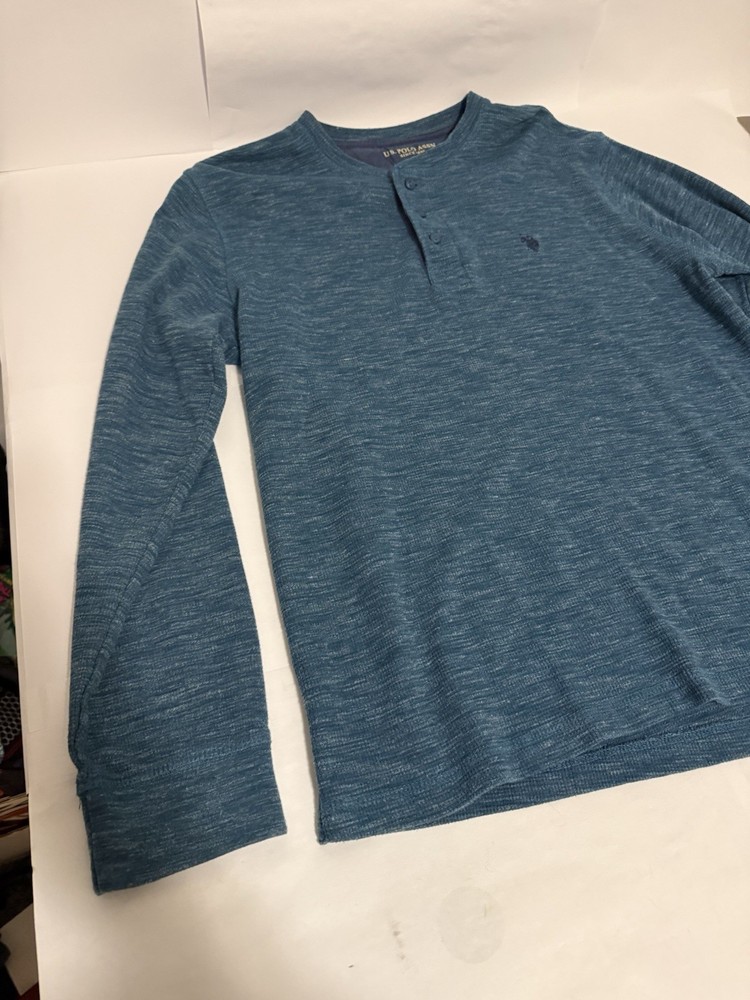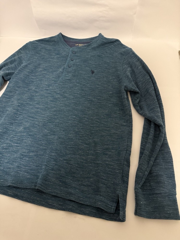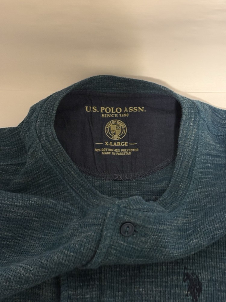 Awesome piece here. Great condition. The U.S. Polo Assn. Men’s Long Sleeve Thermal Henley 1/4 Button Shirt in size XL is a classic and comfortable addition to any man's wardrobe. Made of a blend of polyester and cotton, this shirt features a solid blue color, long sleeves, and a Henley neckline with button accents. Designed for regular fit, this thermal shirt is perfect for keeping warm during colder weather while maintaining a stylish look.