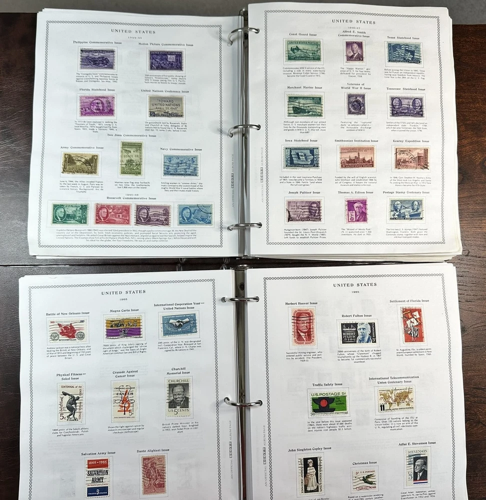 A pair of US postage Pony Express stamp albums. These albums are approximately 60-80% complete with used stamps. Pictures represent only a fraction of the total content. These albums have not been checked for page completeness, accurate stamp placement or quality. R