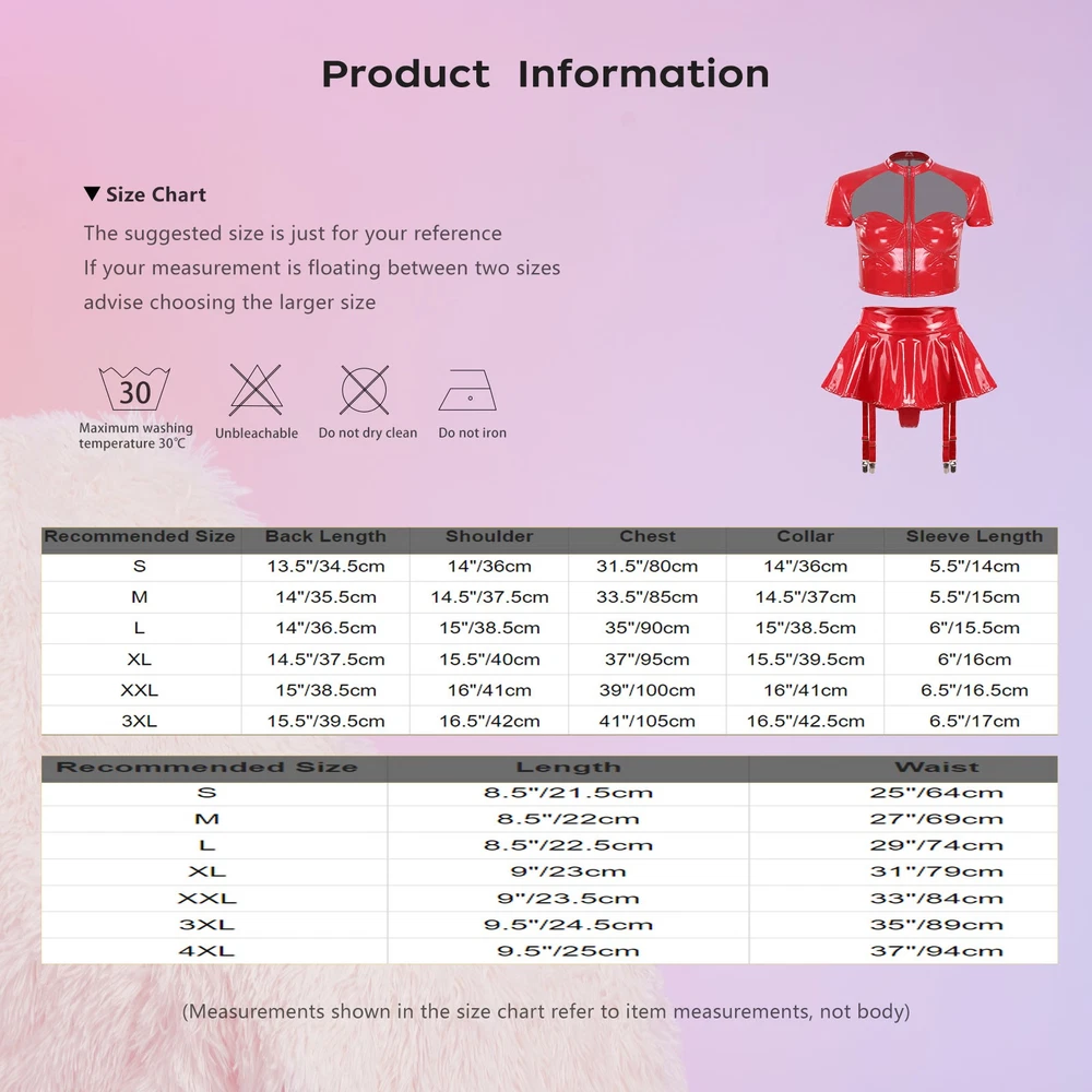 Click Here to New Arrivals New Arrivals Hot Sale Women's Dresses Women's Swimsuit Girls'Dresses Girls'Sleepwear Girls'Swimwear Boys'Clothing Baby Clothing US Women Edgy Gothic Shiny Leather Cutout Bustier Crop Top Mini Skirt Garter Set Set Include : 1Pc Crop Top, 1Pc Miniskirt Condition : New with tags Material : 76% Polyester, 20% PU, 4% Spandex Features: Crafted from a blend of polyester, PU, and spandex, the outfit is stretchy and durable, ensuring a comfortable and long-lasting fit. The wet-look PU leather gives a modern and trendy appearance, making it a standout piece in the crowd. The push-up underwire crop top provides support and a flattering silhouette, enhancing the overall look. The cutout and short-sleeve design of the crop top add a touch of edginess and uniqueness to the outfit. Suitable for various occasions such as raves, themed parties, nightclubs, stage performances, and holiday events, allowing you to shine at every gathering. Size Chart : The suggested size is just for your reference. If your measurement is floating between two sizes, advise choosing the larger size. (Measurements shown in the size chart refer to item measurements, not body) Tag No. Recommended Size Back Length Shoulder Chest Collar Sleeve Length Skirt Length Skirt Waist S S 13.5"/34.5cm 14"/36cm 31.5"/80cm 14"/36cm 5.5"/14cm 8.5"/21.5cm 25"/64cm M M 14"/35.5cm 14.5"/37.5cm 33.5"/85cm 14.5"/37cm 5.5"/15cm 8.5"/22cm 27"/69cm L L 14"/36.5cm 15"/38.5cm 35"/90cm 15"/38.5cm 6"/15.5cm 8.5"/22.5cm 29"/74cm XL XL 14.5"/37.5cm 15.5"/40cm 37"/95cm 15.5"/39.5cm 6"/16cm 9"/23cm 31"/79cm XXL XXL 15"/38.5cm 16"/41cm 39"/100cm 16"/41cm 6.5"/16.5cm 9"/23.5cm 33"/84cm 3XL 3XL 15.5"/39.5cm 16.5"/42cm 41"/105cm 16.5"/42.5cm 6.5"/17cm 9.5"/24.5cm 35"/89cm Friendly Tips: The size is measured by hands, please allow 1-3cm errors of measurement. Photo color might be a little different from the actual product due to color display of different monitors. Product names are trademarks of the listed manufacturer or other owners, and are not trademarks of alwaysforbauhinia. The manufacturer does not necessarily endorse use of these products. Payment Methods Terms and Conditions Shipping Combined shipping is limited only to the items listed under this seller account : rakendw All the free shipping item don't offer discount. We REDUCE US$1.00 on shipping cost for each additional item. Please contact us to send you the update invoice once you finish your purchase. Please note that only the item in same currency can be combined.Please note that we do NOT offer shipping discount for bidding orders or item value less than $5.00 International Orders: The buyer is responsible for any applicable import duties and local taxes. Please verify with your customs before making your purchase. Please verify your address during checkout. We are not responsible for any wrong or undeliverable addresses. Your item will be sent to your ebay address. Please make sure your ebay address is correct. Any non- received items caused by invalid address are not in our full refund or replacement policy. All items will be shipped within 1 business day after full payment is received. It takes about 10-20 days to US UK AU DE; about 20-35 days to other countries.Shipping may influenced by holidays, events and other uncertainties. We could not guarantee the arrival time. If you can't accept the shipping time, please check the extra charge with us to ship your item via express. Please check my other products below: Women Rompers Tassel Bodysuit Music Coveralls Ringmaster Jumpsuits Circus Set USD 8.99 Women Unitard Role Play Jumpsuit Neck Bodysuit Rave Astronaut World Dress Up USD 9.99 Women Dress World Set Boards Costume Astronaut Cosplay Structured Dress Up For USD 9.99 Women Set Theme Costume Metallic Dress A-line Dress Up Disco Cosplay Boards USD 10.99 Women Cosplay Disco Costumes Shiny Metallic Outfit Halloween Clubwear Jacket USD 8.59 Women Dress Cutout Costume Metallic Set Dancewear Astronaut Clubwear Dress Up USD 9.99 Women With Wings Carnival Dress Maxi Dress Toga Tunic Angle Costume Christmas USD 9.99 Women Glossy Shiny Leather Zip Outfits Metallic Crop Top Fashion Undershirt USD 7.99 Women Dress Robot Costume Fashion Cosplay Spaced Set Wetlook Astronaut Rave Up USD 9.99 Womens Jumpsuit Tassel Outfits Rompers Ringmaster Lion Tamer Circus Clubwear USD 10.99 Women Uniform Party Coat Sequin Outfit Festivals Jacket Short Blazer Cosplay USD 8.99 Women Leotard Shoulder Bodysuit Drummer Costume Epaulets Rompers Lion Cosplay USD 12.99 Women Gothic Show Shrug Shiny Armor Harness Top Rave Costume Singer Cosplay Bar USD 7.99 Women Dress Carnival Astronaut Masquerade Outfits And Headwear Alien Costume USD 10.99 Women Elf Festival Cospaly Performance Dress Dress-up Costume Sequin V Neck USD 10.99 Womens Metallic Shiny Alien Cosplay Robot Bodysuit Jumpsuit Space Party Rave USD 6.99 Women Bodysuit Carnival Jumpsuit Raves Outfit Show Arabian Halloween Princess USD 8.59 Women Dress Suit Costume Theme Set World Cosplay Metallic Astronaut Balls Neck USD 8.99 Womens 2Piece Indian Outfits Cosplay Costume Dress Up Set Stage Performance USD 7.99 Women Robes Cassock Gown Priest Costume Catholic Church Long Sleeve Metallic USD 11.99 Women Astronaut Outerspace Jumpsuit Unitard Outfits Show Alien Costume Disco USD 8.59 Women Astronaut Outerspace Alien Costume Suit Outfits Long Sleeves Dress Disco USD 8.59 Women Wet Look A-Line Lingerie Cutout Nightwear Teddy Bodysuit Sleepwear Sexy USD 8.59 Women Costume Shiny Alien Robot Dress Fashion Astronaut Outerspace Cosplay For USD 8.99 Women Cheer Leader Party Outfits Dancewear Cheerleading Rave Crop Tops Costume USD 8.99 Women One Piece Jumpsuits Long Sleeve Leotard Music Cycling Halloween Cosplay USD 8.99 Women's Sequin Crop Top Long Sleeve Shoulder Epaulet Front Zipper Dance Jacket USD 8.99 US Womens Pu Leather Lapel Glossy Jacket Wetlook Open Front Long Trench Coat USD 11.99 Womens Shoulder Shrugs Faux Leather Gothic Armor Shrug Adjustable 