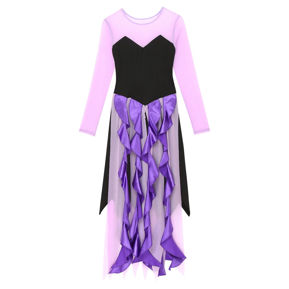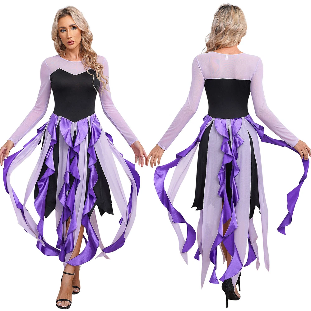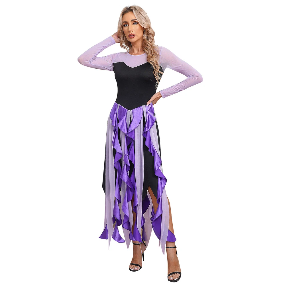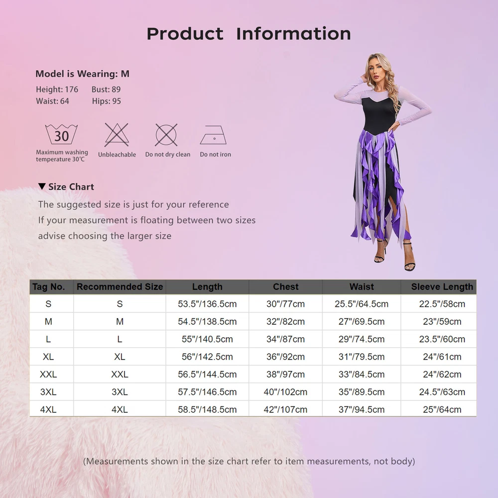 US Women Gothic Black Purple Skirt Bodysuit Mermaid Sea Witch Costume Halloween