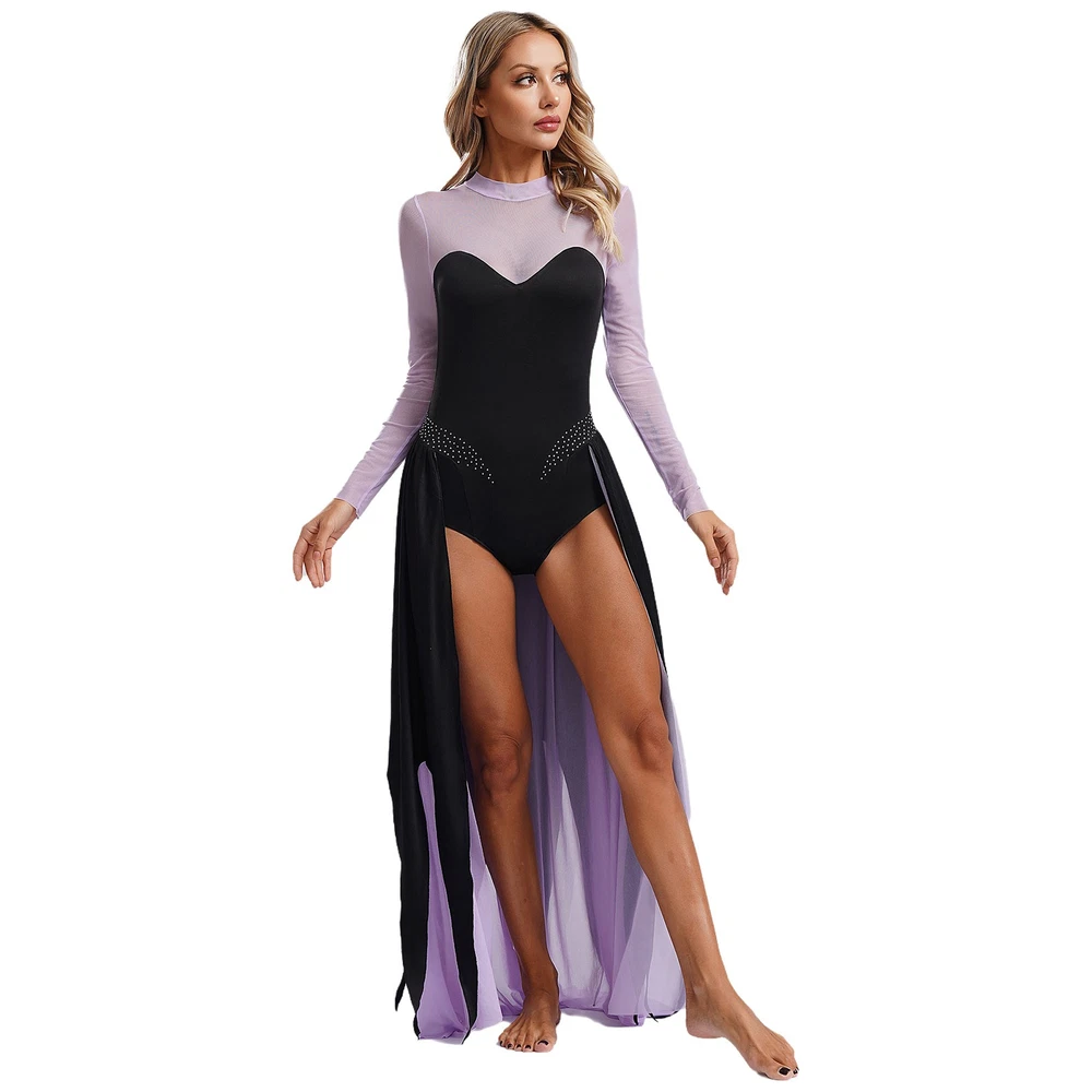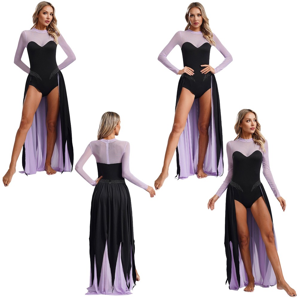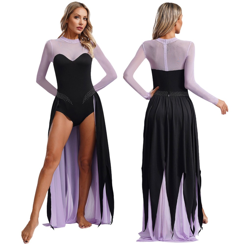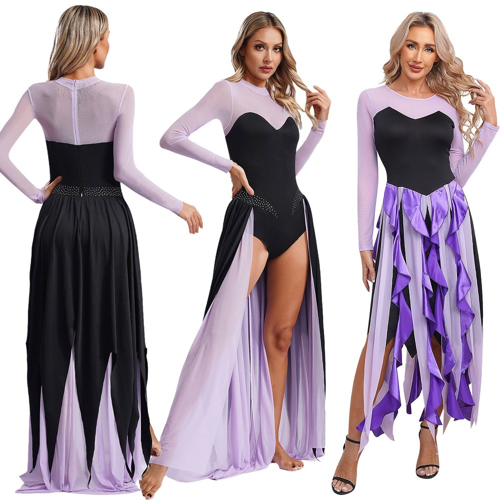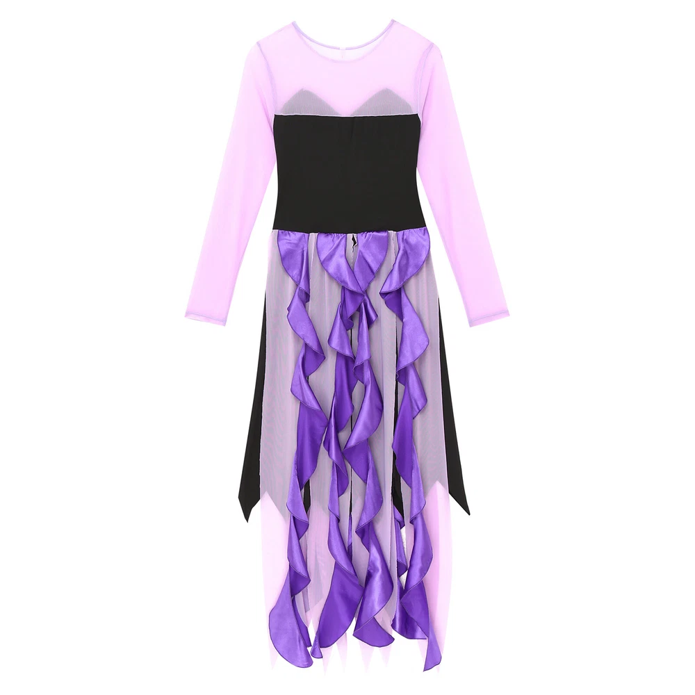 US Women Gothic Black Purple Skirt Bodysuit Mermaid Sea Witch Costume Halloween