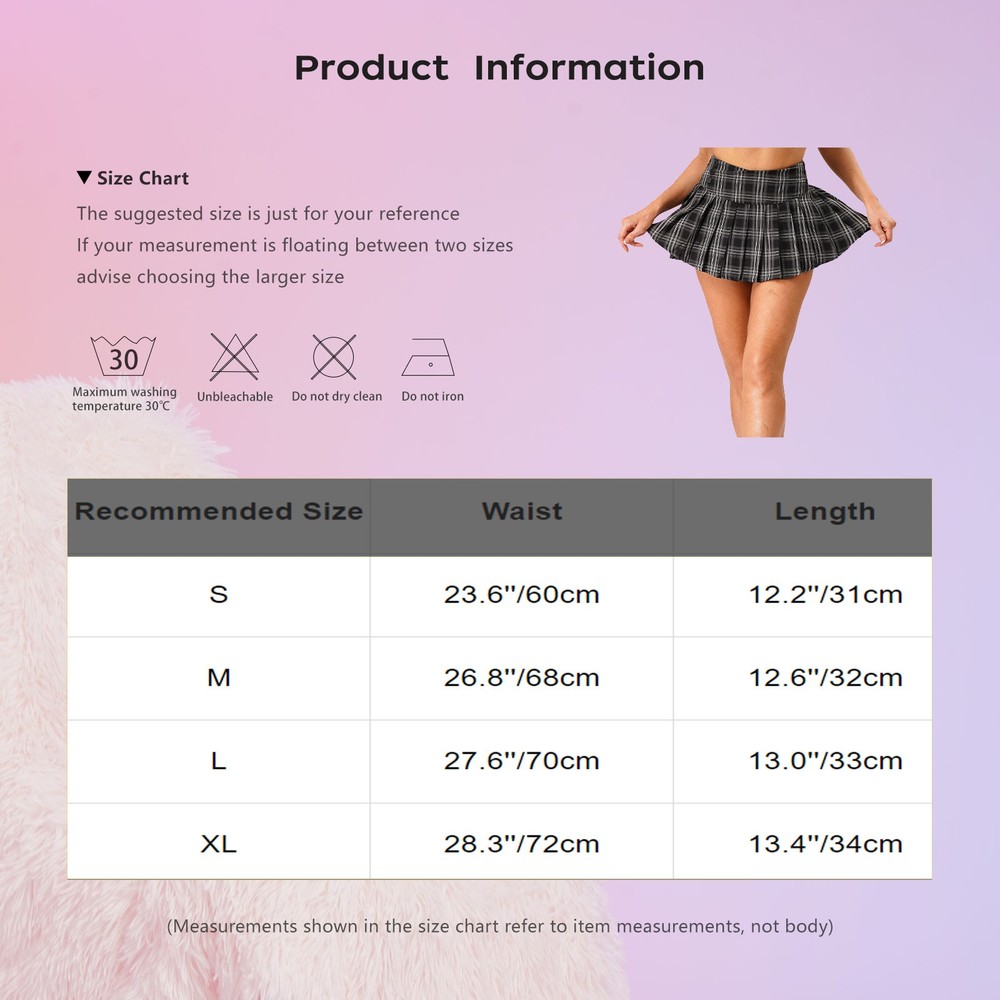 Click Here to New Arrivals New Arrivals Hot Sale Women's Dresses Women's Swimsuit Girls'Dresses Girls'Sleepwear Girls'Swimwear Boys'Clothing Baby Clothing US Women's Mini Plaid Pleated Skirt Y2k Skater Schoolgirls A-line Skirt Uniform #1 Set Include : 1Pc Skirt Condition : New with tags Material : 100% Polyester Features: Made of 100% polyester, the skirt is durable and easy to maintain, offering long-lasting wear. The wide waistband design not only provides a comfortable fit but also adds a trendy touch, making it a fashionable choice for modern women. Buttons decoration on the skirt brings a unique and eye-catching element, setting it apart from ordinary skirts and following the latest fashion trends. The side zipper and pleated design enhance the skirt’s style, creating a dynamic and elegant look, suitable for various body movements. With built-in shorts, it offers convenience and safety, allowing you to confidently wear it in multiple occasions such as street outings, dates, holidays, country concerts, and themed parties. Size Chart The suggested size is just for your reference. If your measurement is floating between two sizes, advise choosing the larger size. (Measurements shown in the size chart refer to item measurements, not body) Tag No. Recommended Size Waist Length S S 23.6’’/60cm 12.2’’/31cm M M 26.8’’/68cm 12.6’’/32cm L L 27.6’’/70cm 13.0’’/33cm XL XL 28.3’’/72cm 13.4’’/34cm Friendly Tips: The size is measured by hands, please allow 1-3cm errors of measurement. Photo color might be a little different from the actual product due to color display of different monitors. #2 Set Include : 1Pc Women’s Skirt Condition : New without tag Material : 100% Polyester Features : Women ladies schoolgirl cosplay mini plaid pleated skirt, simple but eye-catching piece. Mid waist, elastic waistband for a comfy fit, scottish grid style skirt with pleated skirt hem, mini length and single layer. Made of high quality fabrics which provide soft and comfort. It will brings you more joy create an illusion for stunning curves. Suitable for night, sleep, club, bar, theme party, cosplay, casual, role play, or Valentine’s Day. Please refer to the size below carefully before you place an order, hand and machine wash cold, hang dry. Size Chart The suggested size is just for your reference. If your measurement is floating between two sizes, advise choosing the larger size. (Measurements shown in the size chart refer to item measurements, not body) Tag No. Recommended Size Waist Length One Size One Size 22.0-33.1’’/56-84cm 6.7’’/17cm Friendly Tips: The size is measured by hands, please allow 1-3cm errors of measurement. Photo color might be a little different from the actual product due to color display of different monitors. #3 Set Include : 1x Skirt Condition : New without tag Material : Lace, Spandex Features : Women Flower Pattern See-through Lace Skirt Mid Waist Elastic Waistband Sheer Miniskirt Nightwear. High quality fabric, soft, breathable, provide a comfortable wearing experience. Features see-through lace with flower pattern, mid waist elastic waistband for comfy fit. Perfect show your charming curve and makes you hot and attractive to your lover. Great for dating night, honeymoon, bedtime surprise, a good gift for your girlfriend or wife. Size Chart The suggested size is just for your reference. If your measurement is floating between two sizes, advise choosing the larger size. (Measurements shown in the size chart refer to item measurements, not body) Tag No. Recommended Size Waist Length One Size One Size 22.8’’/58cm 12.6’’/32cm Friendly Tips: The size is measured by hands, please allow 1-3cm errors of measurement. Photo color might be a little different from the actual product due to color display of different monitors. Product names are trademarks of the listed manufacturer or other owners, and are not trademarks of alwaysforbauhinia. The manufacturer does not necessarily endorse use of these products. Payment Methods Terms and Conditions Shipping Combined shipping is limited only to the items listed under this seller account : rakendw All the free shipping item don't offer discount. We REDUCE US$1.00 on shipping cost for each additional item. Please contact us to send you the update invoice once you finish your purchase. Please note that only the item in same currency can be combined.Please note that we do NOT offer shipping discount for bidding orders or item value less than $5.00 International Orders: The buyer is responsible for any applicable import duties and local taxes. Please verify with your customs before making your purchase. Please verify your address during checkout. We are not responsible for any wrong or undeliverable addresses. Your item will be sent to your ebay address. Please make sure your ebay address is correct. Any non- received items caused by invalid address are not in our full refund or replacement policy. All items will be shipped within 1 business day after full payment is received. It takes about 10-20 days to US UK AU DE; about 20-35 days to other countries.Shipping may influenced by holidays, events and other uncertainties. We could not guarantee the arrival time. If you can't accept the shipping time, please check the extra charge with us to ship your item via express. Please check my other products below: US Womens Glossy PU Bodycon Miniskirt Sheer Mesh Front Zipper Wet Look Skirt USD 13.49 Women Skirts Mini Dress Fashion Costume High Waist Shiny Bodycon Mock Neck Bar USD 8.99 Women's Skirts Frilly Underskirt Festive Skirt Role Play Miniskirt Checked Mini USD 8.99 Women Underwear Disco Skirt Fun Lingerie Stretchy See Through Babydoll Sheer USD 11.99 Women Outfits Workout With Sctocking Nightclub Sets Solid Color Miniskirts Silk USD 11.99 Women Clubwear Bottoms Skirt High Waisted Miniskirt Party Lingerie Western 70s USD 8.59 Women Costume Casual Skirt Stretchy Dress Elastic Clubwea Adult Lingerie Lace US