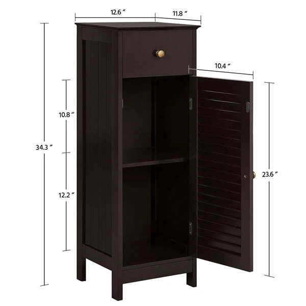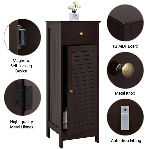 You may also like Bedroom Chests of Drawers Storage Cabinet Organizer 6 Drawer Black Oak Furniture 89.0 USD Free shipping 48"W x 24"D x 72"H 5-Shelf Steel Freestanding Shelves Shelving Units Silver-Vein 84.47 USD Free shipping Deco Panel TV Stand for TVs up to 42 inch Entertainment Center with Two Shelves 40.96 USD Free shipping 1 in. x 30 in. Belt Sander with 5 in. Sanding Disc 2.3 Amps 3160 FPM 3450 RPM 90.56 USD Free shipping Electric Space Fireplace Heater Realistic Flame Effect Stove Free Stand Home New 59.0 USD Free shipping Wooden Over the Toilet Bathroom Storage with 3 Fixed Shelves Double Door Cabinet 43.98 USD Free shipping *Specifications: Material: MDF Dimension: 32 x 30 x 87 cm/12.6 x 11.8 x 34.3"(LxWxH) G.W.: 8.7 Kg/19 Lb Color: Espresso Packing List: 1 x Bathroom Storage Cabinet 1 x Instruction *Features: High Quality Material: our bathroom storage cabinet is made of high quality MDF material, sturdy and durable to use and not easy to break Modern Design: stylish and fashionable design perfectly compatible seamlessly with any room décor and also adds a touch of elegant charm to your room Large Storage Space: the cabinet comes with large storage space, which will keep everything in order; one shutter door and one drawer design can help you classify your items better. You can put a variety of toiletries, cosmetics, and other sundries Multi-purpose Use: this bathroom cabinet is not only used as bathroom cabinet, but also can be used as side cabinet and cupboard Versatile & Practical: compact size and practical function make it suitable for bathroom, bedroom, hallway or kitchen Waterproof: the high-quality MDF wooden material can stand the humidity of the bathroom and prevents moisture Easy To Assemble: it comes flat packed with detailed instructions for quick easy assembly Bedroom Storage Classic Chest of Drawers Cabinet Classic 6 Drawer Dresser Home 89.0 USD Free shipping Walnut Storage 6 Drawer Chest of Drawers Cabinet Organizer Bedroom Rack Dressers 79.0 USD Free shipping Dresser 4 Drawer Bedroom Furniture Storage Chest Organizer Closet Cabinet Home 69.0 USD Free shipping New 4 Drawer Chest Dresser Clothes Storage Bedroom Furniture Cabinet Organizer 69.0 USD Free shipping Black Storage Cube Dresser Bedroom Furniture Chest Organizer Closet Cabinet Home 59.99 USD Free shipping 5-Drawer Tall Fabric Storage Dresser w/ Metal Frame Wooden Top Chest Tower Unit 58.5 USD Free shipping 2-Tier Wire Shelf Closet Organizer Storage Garment Rack Clothes Hanger Cabinet 43.97 USD Free shipping Closet System Storage Organizer Garment Rack Clothes Hanger Dry Shelf Heavy Duty 69.98 USD Free shipping Contemporary Storage Cabinet with 2 Doors and 2 Adjustable Shelves, Espresso 73.98 USD Free shipping 4 Drawer Dresser Shelf Cabinet Storage Home Bedroom Furniture White 89.99 USD Free shipping Tall Free Standing Kitchen Cabinet Microwave Cart Shelf Storage Dining Room Hot 115.0 USD Free shipping Wooden Storage Cabinet Organizer with 4 Drawers for Bathroom Standing, Espresso 69.99 USD Free shipping