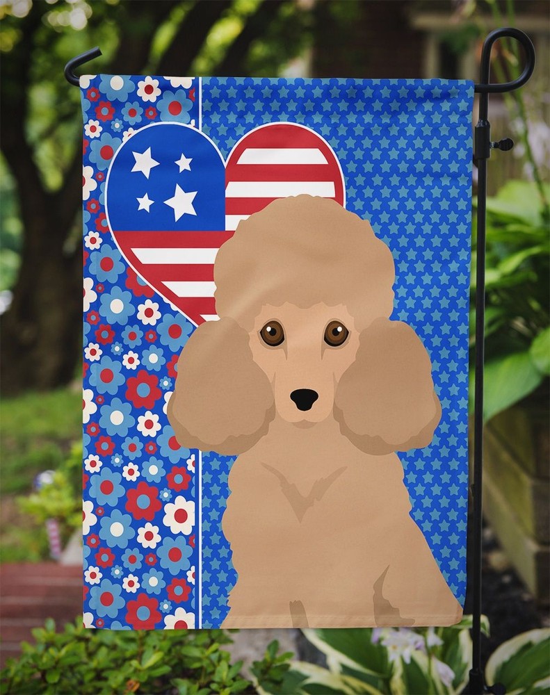 Highlights Vibrant Outdoor Decor: Elevate your garden, patio, or yard with Caroline's Treasures Garden Flag, featuring stunning artwork that adds a pop of color and personality to your outdoor space. Premium Quality and Durability: Made from two pieces of thick, double-sided polyester fabric, this 2-ply garden flag is water-resistant, weatherproof, and designed to withstand wind, rain, and snow, ensuring long-lasting beauty. Readable on Both Sides: With correctly readable words on both sides, this garden flag offers a delightful visual experience from any angle, making it a captivating focal point in your outdoor decor. Made in the USA: Proudly crafted in the USA, Caroline's Treasures Garden Flag is a symbol of exceptional quality and craftsmanship. Enhance your outdoor setting with this high-quality flag and enjoy its vibrant charm for years to come. Poodle gifts,Poodle collectibles Specification Brand:Caroline's Treasures Details Garden Flag featuring breed specific Poodle artwork. This Garden Flag is from Caroline's Treasures collection USA Love America. Enhance the beauty of your garden, patio, or yard with Caroline's Treasures Decorative Garden Flag, proudly made in the USA. Crafted from two pieces of thick, double-sided polyester fabric, this 2-ply garden flag is designed to withstand various weather conditions, making it water-resistant and weatherproof. Featuring correctly readable words on both sides, this garden flag offers a delightful visual experience from any angle. With its heavier weight, it stands out among other garden flags, ensuring stability and durability even in wind, rain, and snow. Measuring approximately 11 1/4 inches by 15 1/2 inches, this flag allows you to personalize your outdoor decor. It comes with a 1 1/2-inch sleeve sewn in, allowing easy attachment to any standard garden flag stand or garden size porch hanger (sold separately). Make a statement in your outdoor space with Caroline's Treasures Decorative Garden Flag, a vibrant and high-quality flag that adds color and personality to your surroundings. Proudly made in the USA, it's a symbol of quality craftsmanship and attention to detail. This Garden Flag is from Caroline's Treasures Dogs category of products.