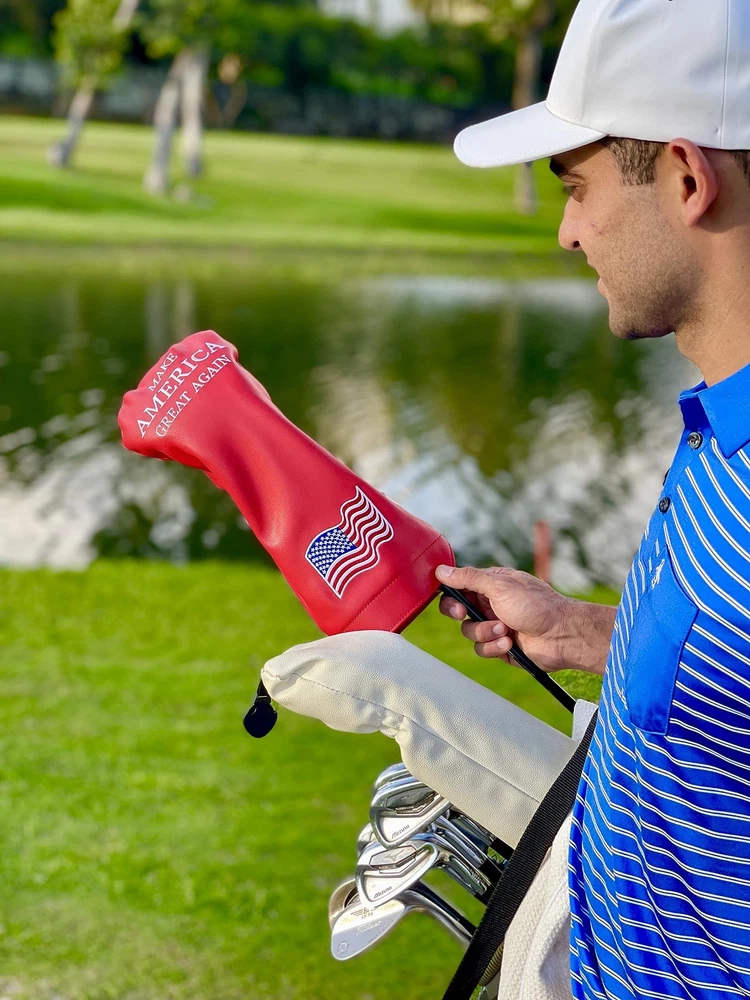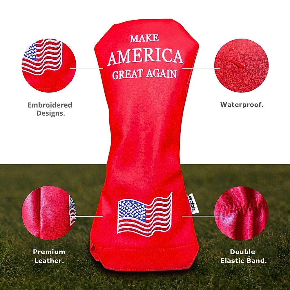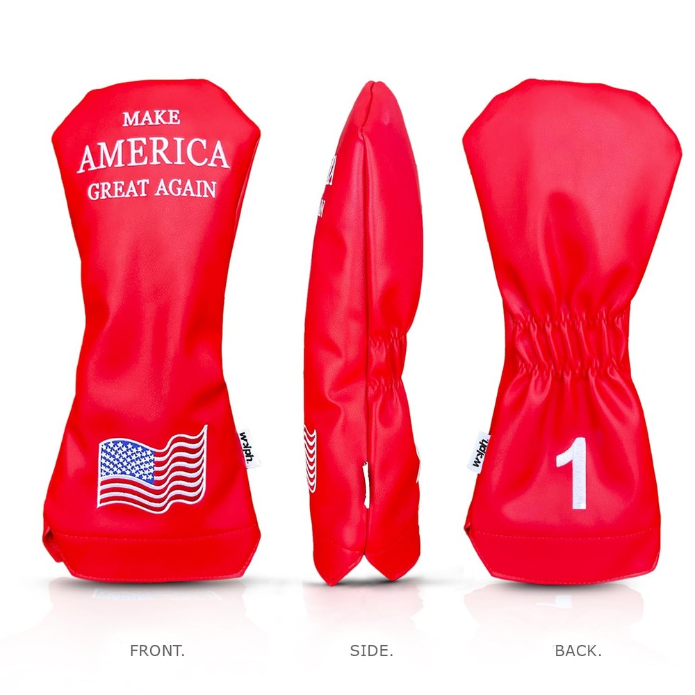 Introducing the Great America Flag Golf Headcovers for Drivers — inspired by the iconic RED MAGA HAT we all recognize — because your golf game deserves a dash of patriotism and a sprinkle of humor! This premium Trump merchandise is meticulously crafted with an embroidered American flag design, making it the perfect blend of style and spirit for any golfer. Whether you're looking for patriotic golf gifts or just a bold statement on the course, this driver cover fits any size club (up to 460cc) and protects it from scratches and dings. Built with durable materials, it’s not only a funny golf accessory but also a true defender of your gear. Join the golf revolution with a touch of red, white, and blue — and celebrate America in every swing! FITS UP TO 460cc DRIVER – This stylish and funny golf headcover goes beyond aesthetics; it ensures a flawless fit for your prized driver, accommodating popular brands like Callaway, Nike, Big Bertha, King Cobra, Taylormade, Titleist, Ping, and more. A must-have for any patriotic golfer or Trump headcover collector. PREMIUM QUALITY – Designed with a soft velvet interior and durable PU leather exterior, this driver headcover protects your club from scratches and dings while bringing a bold, Trump-inspired flair to your golf gear. A blend of quality, function, and style built to last. EXCLUSIVE DRIVER HEADCOVER – Crafted with attention to detail, this piece stands out as premium Trump merchandise. The waterproof and dustproof outer PU leather not only makes it reliable but also the perfect addition to your lineup of golf accessories for men. PATRIOTIC AND FUNNY GOLF – Featuring a bold embroidered number 1 and MAGA hat–inspired red design, this headcover proudly celebrates American spirit on the course. Its double elastic band ensures a snug fit with standout personality. ELEVATE YOUR GOLF GAME – Make a powerful statement by personalizing your golf bag with a touch of humor, history, and patriotism. This is more than just a headcover—it’s a patriotic golf gift that resonates with fans of classic American values.