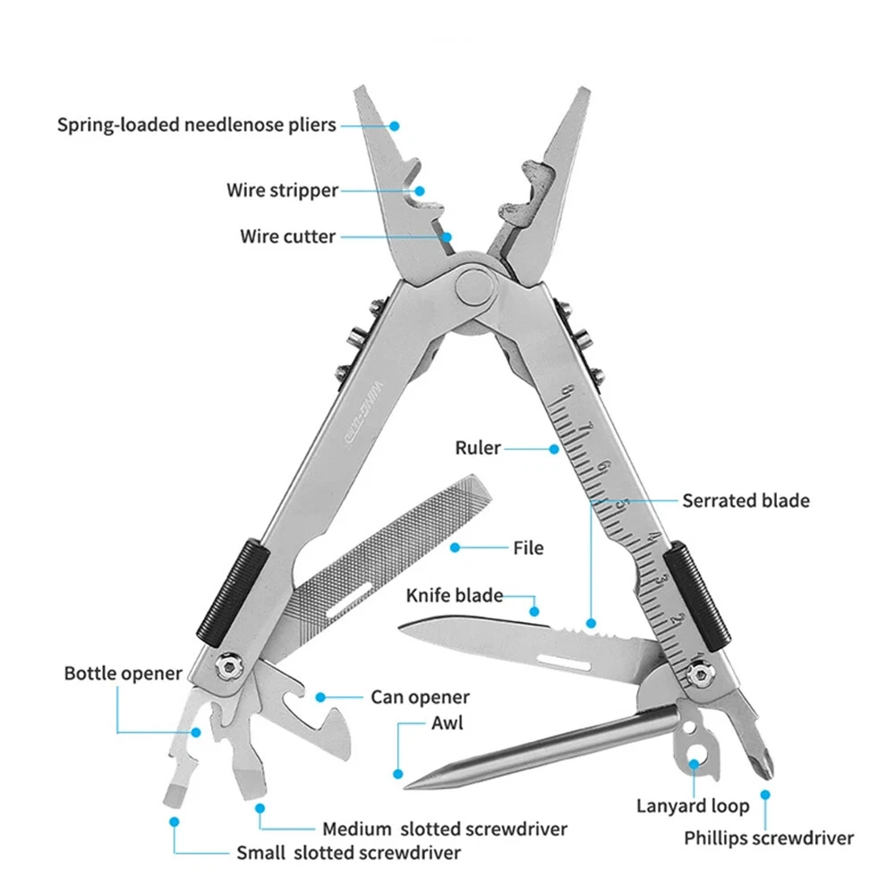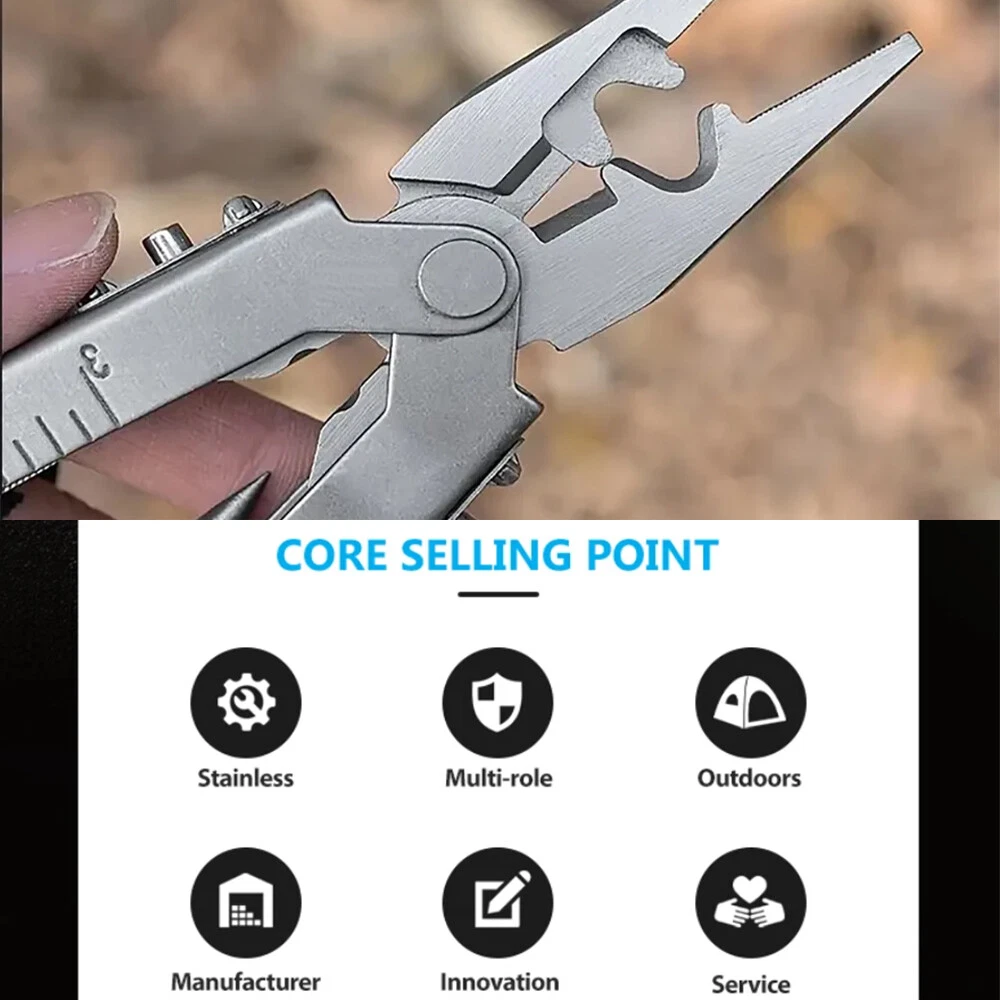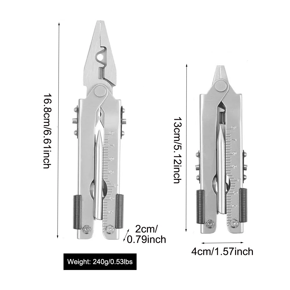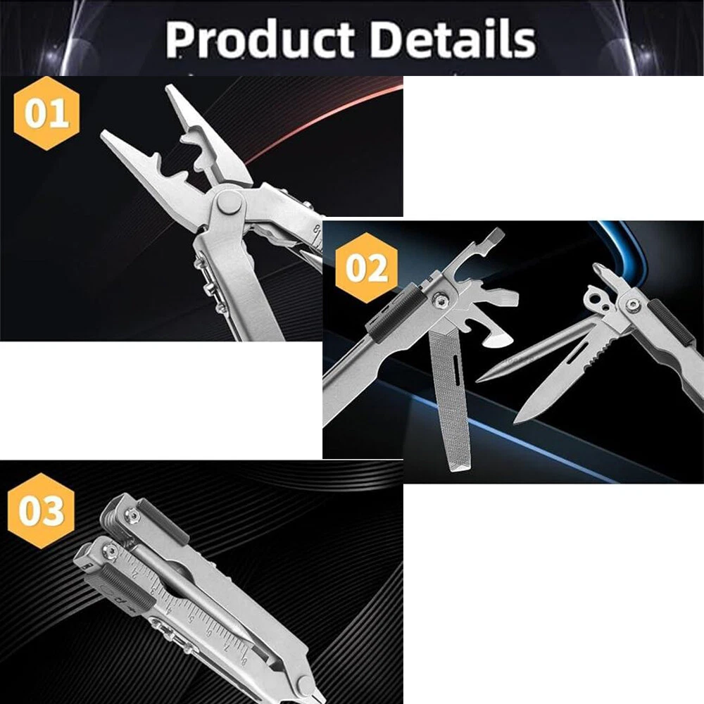 Electric Callus Remover Foot Sander Rough Feet Rechargeable Dead Skin Tools USA 11.98 USD 12.99 USD Free shipping 8% off Super Bright 990000LM Rechargeable LED Headlamp Head Light Torch Flashlight Lamp 12.98 USD Free shipping 19"Men Laptop Backpack Bag Anti-Theft Extra Large Travel School Waterproof Bag 25.59 USD Free shipping Hair Curling iron Short And Long Rotating Hair Curling Two-Temperature Control 13.99 USD 0.99 USD Cordless Massage Belt Electric Heated with Back Support Waist Vibration Massager 29.59 USD Free shipping Concealed Carry Fanny Holster Tactical Military Pistol Waist Pouch Gun Bag 12.33 USD 12.98 USD Free shipping 5% off Rechargeable Spotlight,Spot Lights Hand Held Large Flashlight 1000,000 Lumens 27.98 USD 2.66 USD Solar Portable LED Flashlight USB Rechargeable Camping Tent Light Lantern Lamps 10.99 USD Free shipping Portable Plasma Pen Mole Removal Dark Spot Remover Skin Wart Tag Tattoo Beauty 15.99 USD Free shipping 36"in Tactical For Gun Bag Gun Padded Soft Case Carbine Hunting Black Backpack 24.29 USD 26.99 USD 0.99 USD 10% off Solar Power 300W LED Torch USB Rechargeable Light Outdoor Camping Tent Lamp Bulb 12.99 USD Free shipping 50PCS GOLF Shoe Spikes Replacement Studs Soft Fast Twist Cleat For Footjoy USA 10.99 USD 0.99 USD TWS Audifonos inalambricos 5.3 Bluetooth Auriculares For iPhone Samsung Android 9.99 USD Free shipping Bicycle Motorcycle Mount Invisible Selfie Stick For Gopro Insta360 X3 X4 Max 20.99 USD Free shipping 1000 Lumens Premium Rechargeable LED Flashlight Stainless Steel Pen Light 6.99 USD Free shipping Tactical Helmet Cover for Fast MH PJ BJ Helmet For Airsoft Paintball Helmet Cove 4.99 USD Free shipping Product Description Description: Compact Multi Purpose Tool: Features wire cutters, needle nose pliers, wire crimper, ruler, file, lanyard ring, cross head screwdriver, bottle opener, can opener, plain edge blade, serrated blade, large, medium, and small flathead screwdrivers. Secure & Safe Multi Tool: There is locking system, this multi tool ensures user safety and comes with a sheath. Pocket & Pliers: The multi-purpose tool features needle nose pliers and razor-sharp blades; this outdoor survival tool is perfect in your camping tool kit or for everyday use. One-Handed Use: Designed for convenience, our patented quick-opening pliers allow one-handed operation; perfect as a survival tool. Military-Grade Build: Constructed from lasting stainless steel, this military grade tool ensures longevity and reliability; whether for camping or home repairs, this multi tool is built to last. Specification: Item Name: Multi Tool Color: Silvery Material: Stainless Steel +ABS Weight: 240g / 0.53lbs Size: (Unfold) 16.8x4x2cm / 6.61x1.57x0.79inch, (Close) 13x4x2cm / 5.12x1.57x0.79inch Application: Outdoor Gear / Camping / Adventure / Emergency / Survival / Collection / Home Package Included: 1 x Multi Tool 1 x Storage Bag Payment Shipping Returns Contact Us 1. This is the payment method we can accept: Paypal 2. You can checkout and pay immediately after the auction ends or you complete the purchases. If you need an eBay invoice sent to you by Email, please contact us before making payments. 3.Once the checkout is completed, you will not be able to include any additional purchases. We start to process and fulfill your order once payment is received. New purchases after the checkout will be processed separately. 4. Payments are expected within 4 days after the order is confirmed. Unpaid item (UPI) strike may be filed with eBay upon non-receipt of payment. 1. How much is the shipping & handling (S&H)? Our shipping and handling charges are clearly stated in the Shipping and Payments section of the item page, and we provide Free Shipping for most items. 2. For multiple purchases, the combine shipping discount will be automatically calculated when you check out and pay all of your purchases together. Items checked out separately may not be combined and the combine shipping discount will not be offered automatically. 3. Please make sure the correct Ship-To address is entered before checking out. Once the payment is completed, you may not be able to change the shipping address. We shall not be held responsible for any wrong or undeliverable addresses. 4. We usually ship within 1-2 business days of receiving cleared payment. 1. We put buyer's satisfaction at top priority. If you're not pleased with your purchases, we'll be happy to make an exchange or refund the item total price less Shipping and Handling (S&H) charges within 30 days of your purchases. 2. For any Exchange, Refund or Return, the item must be in its original condition, including the box, packaging, and all the accessories or gifts. 3. We'll provide prepaid return shipping label if the return is a result of our error. Postage reimbursement is offered only on standard mails, and it needs to be approved by our staff prior to returning. 4. Please allow up to 7 business days for returns to be processed. 5. Shipping and Handling (S&H) charges are not refundable. 1. Customer satisfaction is very important to us and our feedback rating reflects this satisfaction. If you have any question or concern, please contact us via eBay message. 2. We respond to all eBay messages as quickly as possible. Though your question will usually be answered very soon, please allow us up to one business day before you start thinking your message is neglected or the reply is avoided, because there would be time difference, non-working hours or public holidays that have prevented us from making an instant response. Payment 1. This is the payment method we can accept: Paypal 2. You can checkout and pay immediately after the auction ends or you complete the purchases. If you need an eBay invoice sent to you by Email, please contact us before making payments. 3.Once the checkout is completed, you will not be able to include any additional purchases. We start to process and fulfill your order once payment is received. New purchases after t