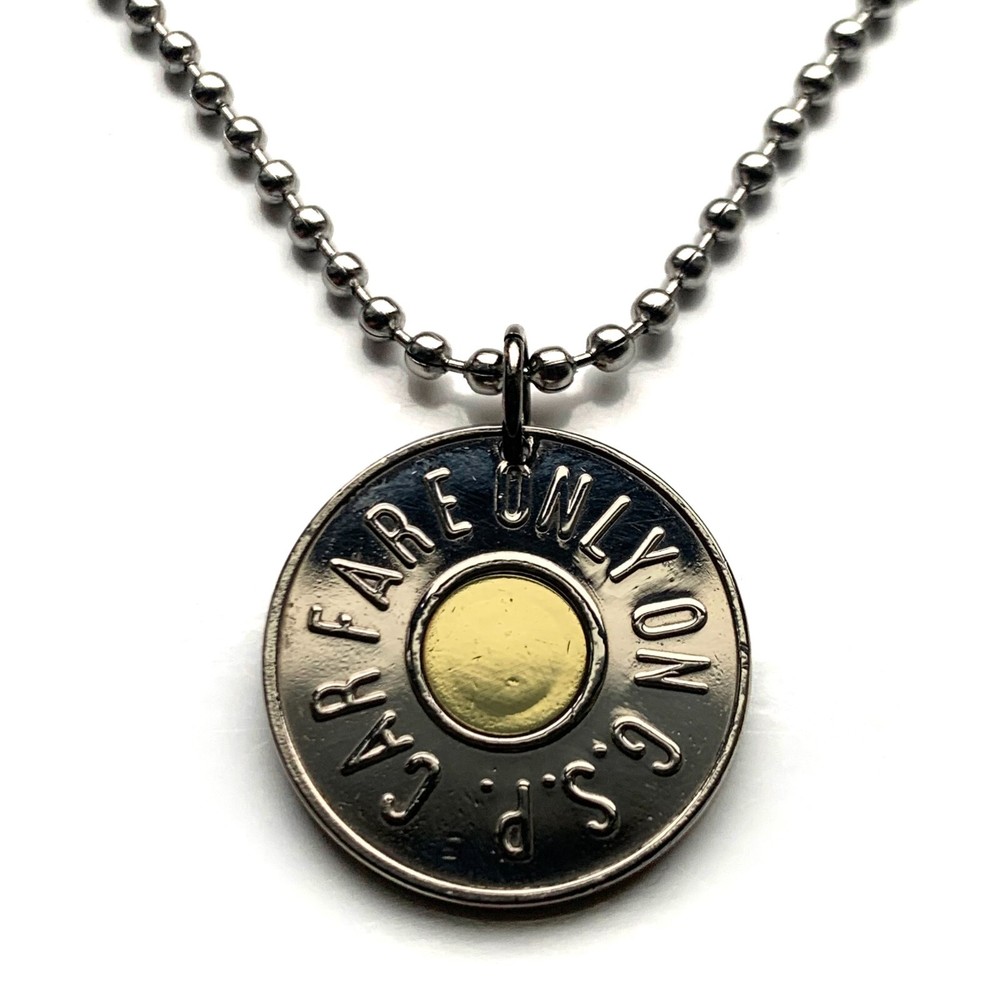 1988 New Jersey Garden State Parkway Car Token {36S} FEATURING front lettering: GARDEN STATE PARKWAY back lettering: CAR FARE ONLY ON G.S.P. • quantity 1 • demonetized {no longer in circulation} polished Bi-metallic coin Copper-nickel with 8 mm brass center • diameter: 23 mm • weight: 5.10 g • comes with a 24" stainless steel ball chain 1988 USA United States of America New Jersey GSP Garden State Parkway Car Token coin pendant necklace jewelry NJ Highway Authority Transit Transportation Bergen Ocean One Fare Cape May Montvale Pine Barrens Byway Lower Township Atlantic County Monmouth Burlington Middlesex Union Essex Passaic