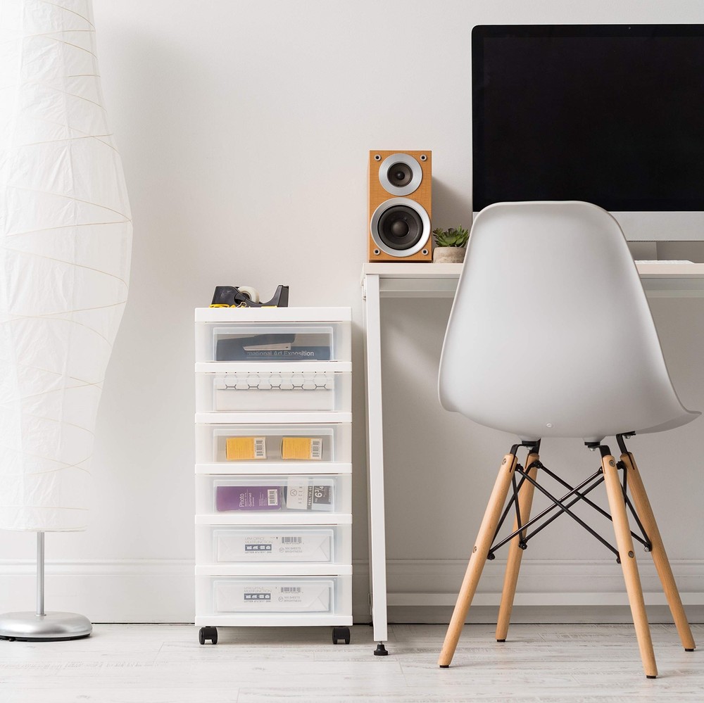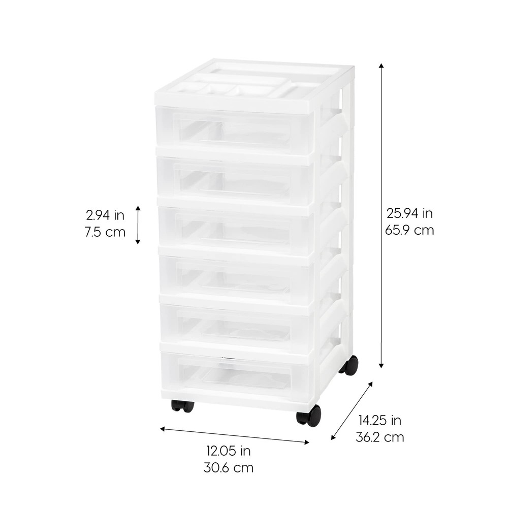 MULTI-PURPOSE ORAGNIZER: Store a variety of household items that are frequently used in the office, closet, under-desk, kid’s room, craft room, nursery, or dorm room MOBILE STORAGE SOLUTION: Removable wheels are included, can be attached to the foot of the chest so you can move it around smoothly, or remove them for secured placement MADE IN USA: High-quality materials are used for our domestically-manufactured products. The sturdy plastic makes these durable, and the smooth glide drawers give you easy access to contents. We use recyclable material, so our products are green-circle certified. DRAWERS: Drawer stops are attached on both sides of drawers to prevent drawers from falling out. Drawer dimension: 12.5”D X 9.5”W X 2.94”H DIMENSION: 14.25"D X 12.05"W X 25.94"H