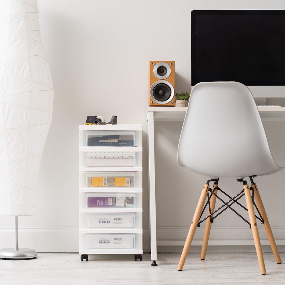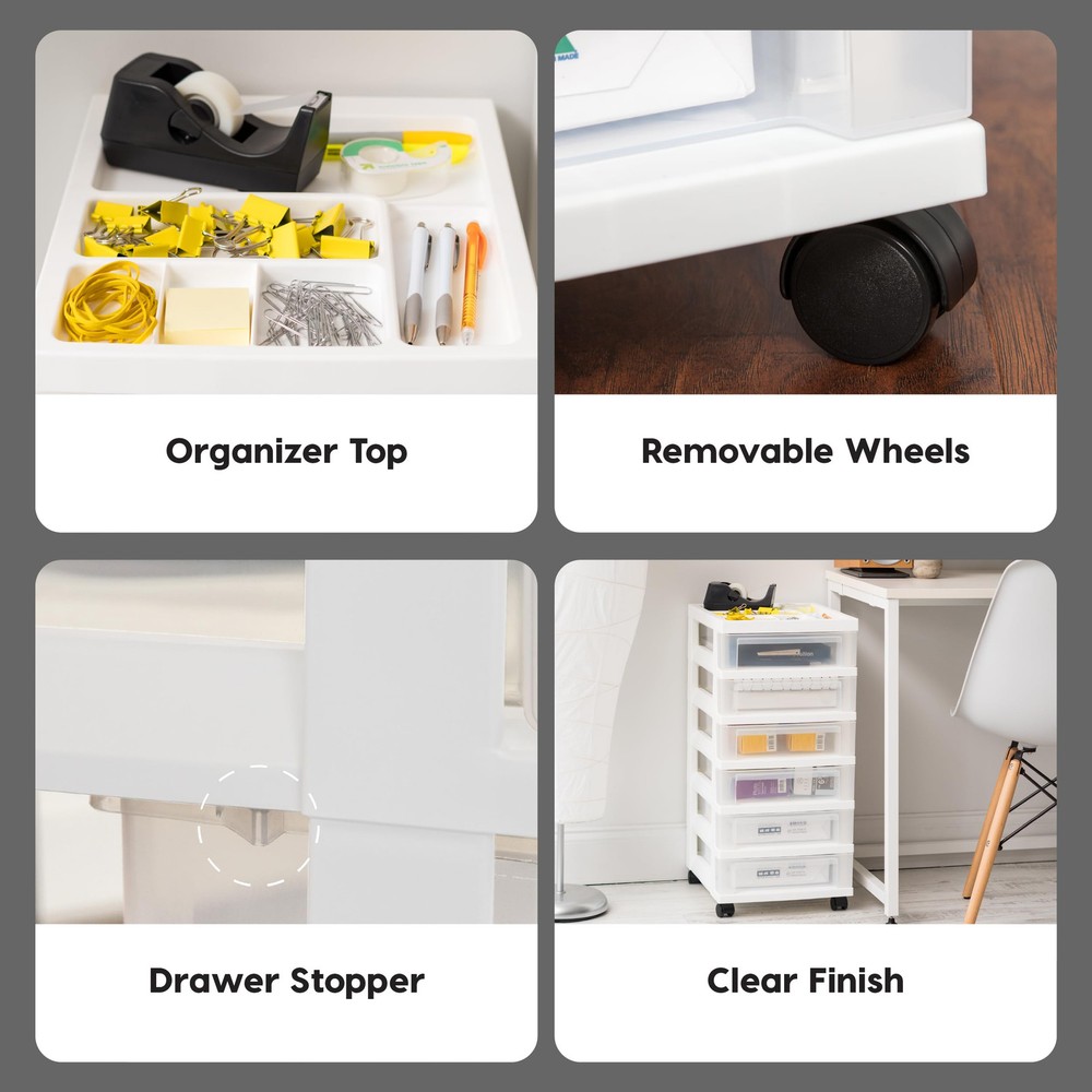USA Storage Drawer Cart USA Drawer Cart offers a practical storage solution for any room of the home. Organize and store a variety of household items that are frequently used in the bedroom, kitchen pantry, bathroom, craft room, nursery, or dorm room. It could be used to store important documents, paper, files, or stationaries at the office. Clear drawers allow contents to be easily identified while keeping them neat and contained. Drawer stops prevent drawers from being removed accidentally. Use the included casters to create a rolling storage option allowing you to easily transfer the unit from room to room at your convenience. This black drawer cart has a multi-purpose use and is a versatile storage option for any room of the home. It's Ideal for controlling clutter and keeping living spaces neat and organized. The cart’s top lid is designed to organize small parts for easier accessibility. This could be used to place pens, paperclips, paper and so much more. USA Plastic Drawer Carts are made in the USA. All of our products are Green-circle certified. We can organize our home and protect our Earth at the same time! MULTI-PURPOSE ORAGNIZER: Store a variety of household items that are frequently used in the office, closet, under-desk, kid’s room, craft room, nursery, or dorm room MOBILE STORAGE SOLUTION: Removable wheels are included, can be attached to the foot of the chest so you can move it around smoothly, or remove them for secured placement MADE IN USA: High-quality materials are used for our domestically-manufactured products. The sturdy plastic makes these durable, and the smooth glide drawers give you easy access to contents. We use recyclable material, so our products are green-circle certified. DRAWERS: Drawer stops are attached on both sides of drawers to prevent drawers from falling out. Drawer dimension: 12.5”D X 9.5”W X 2.94”H DIMENSION: 14.25"D X 12.05"W X 25.94"H