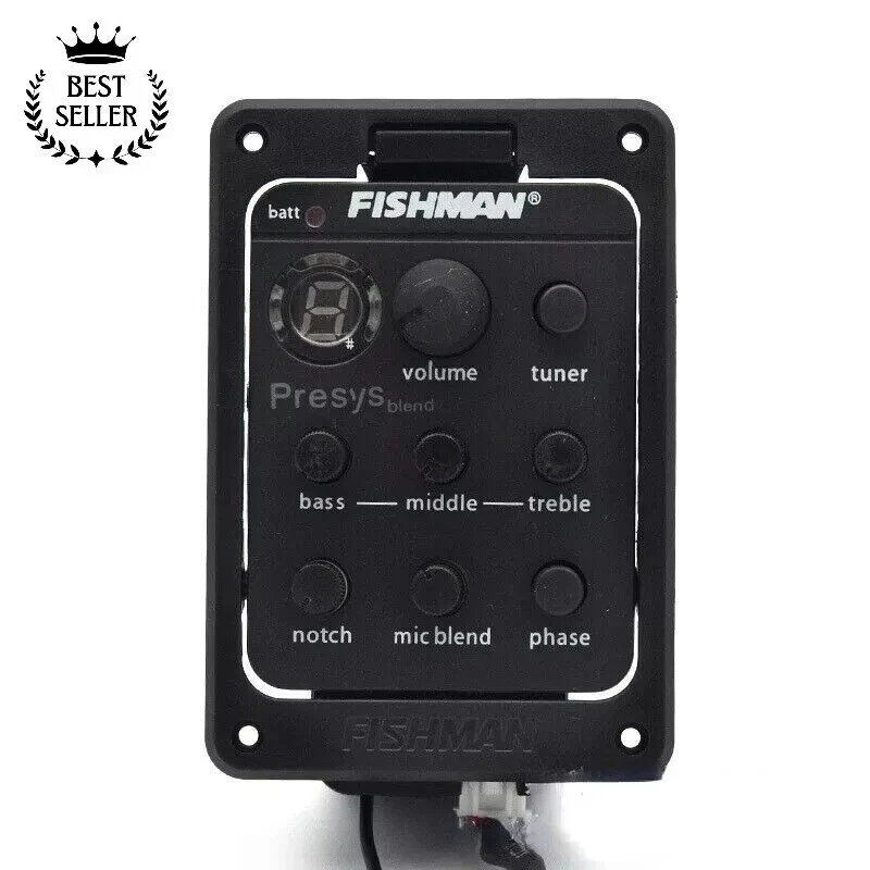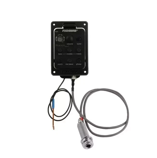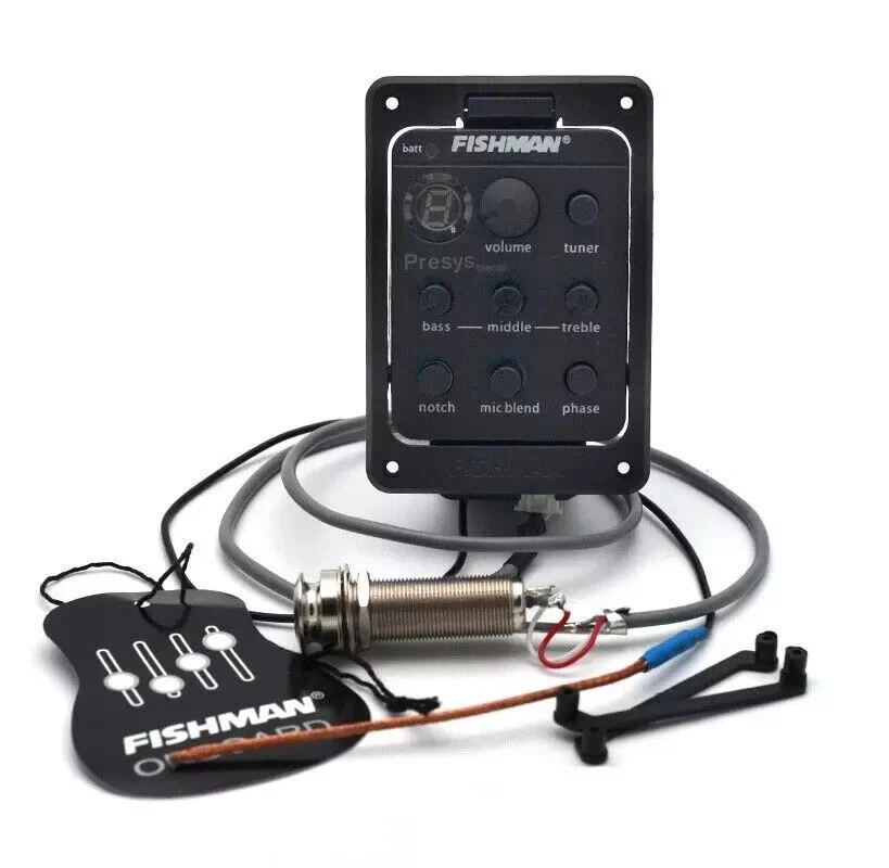 SHIPS SAME or NEXT DAY. FISHMAN 301 Presys Blend Guitar Pickup Dual Beat Preamp Piezo Pickup With Mic Enhance your music with the FISHMAN 301 Presys Blend Guitar Pickup. This dual beat preamp piezo pickup is designed to provide you with the perfect sound that will make your music stand out. It is made by Fishman, a trusted brand in the music industry, and is perfect for any guitar enthusiast. The pickup is easy to install and comes in a sleek black color. It is designed to be active and has a unit quantity of 1. The position of the pickup is on the bridge, making it perfect for any guitar setup. This unit is a great addition to any guitar and will provide you with a unique sound that will make your music shine. 2.20" W x 3.3" L x 1.625" D (55.8mm x 84.2mm x 41.3mm) Hole size: 2.0" W x 2.662" L (50.8mm x 67.62mm) Screw spacing: 1.785" W x 2.795" L (45.34mm x 71mm) Package size: 24 x 16 x 5.2cm / 9.4 x 6.3 x 2inch Package weight: 117g / 4.1oz Features: 4-band equalizer, rotate bass/middle/treble to adjust volume frequency. With phase and tuner function. Tone and volume control. LED for battery check, replace battery when Batt lights. Built-in microphone with mic blend level control. Unique pivot design for instant 9-Volt battery access. Powered by a 9V battery (not included).