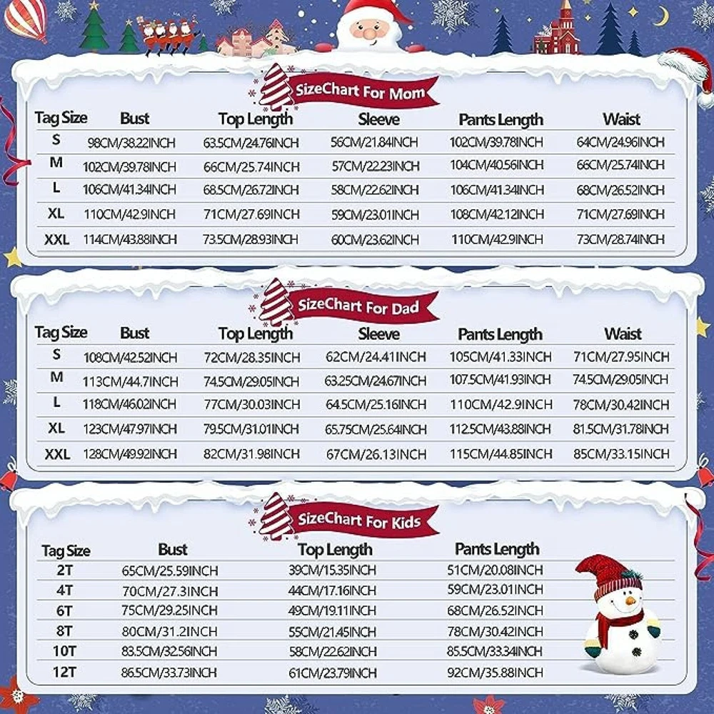 Description Christmas Pyjamas Women Men Kids Xmas Family Matching Nightwear PJs Sets Gifts Feature: Style: Christams sets Material: Milk silk Attention plz: If your kid is strong, we recomend choosing a larger size, thanks. Please kindly refer to your kids actual height and the size chart before buying/bidding. Thanks. There is 2-3% difference according to manual measurement. please check the measurement chart carefully before you buy the item. 1 inch = 2.54 cm Please note that slight color difference should be acceptable due to the light and screen.Main Color: Red Styles: Dad, Mom, Kids, Baby Size: S;M;L;XL;2XL;3XL;2T;3T;4T;5T;6T-7T;8T-9T;10T-11T,12T-13T;14T Sleeve Length: Long SleevePackage included: 1* Tops & 1* Pants Shipping 1. We ship all of our items worldwide within 48 hours (exclude holidays and weekends) after the payment being cleared. 2. Royal Mail is our standard shipping way to U.K., usually it takes 8-12 working days to arrive, holidays may delay. 3. ePacket is our standard shipping way to U.S.A. for the order over 5USD, usually it will takes 6-14 days to arrive, holiday may delay 4. China Post economy is our standard shipping way to U.S.A. for the order under 5USD, usually it will takes20-25 days to arrive, holiday may delay 5. Other countries, the shipping time will be 20-30 days as usual, holidays may delay. 6. Sometimes it may delay in courier sevice duo to the holidays or weather problem. Payment Payment by Paypal only! We only ship to the confirmed address provided by ebay Please make sure your address on ebay matches with the address you would like us to ship before you pay. Feedback 1. If you are satisfied with the items and our service, please take a minute to leave us a positive feedback, we will gladly do the same for you. 2. UK Royal Mail is our standard shipping way, usually it takes 7-10 working days to arrive. 3. Please do not hesitate to contact us to get a better solution before you leave a neutral or negative feedback, even open a case, we will provide you the best service. Return For any problems caused by our side, we will reship or refund 100% payment including shipping cost after we being notified within 48 hours. We don't accept to return 100% payment as size problems (so plz confirm your size before u order it), If you want to return, you will undertake the returned shipping cost. Contact You can contact us by leaving us an txt message on Ebay Our Working schedule: UNITED STATES: PM7:00~AM3:00 FRANCE: AM2:00~AM10:00 UK: AM1:00~AM9:00 SPAIN: AM2:00~AM10:00 GERMANY: AM2:00~AM10:00 AU: AM12:00~PM8:00 Brazil: PM10:00~AM7:00 We will respond to each txt message within 24 hours every working days(within 36 hours on weekend). We will provide you the best service, sincerely appreciated you would contact us to get a better solutions then leave neutral/negative feedback or open a case, and thank you so much to consider time difference, maybe we couldn't not reply to you in a timely manner.