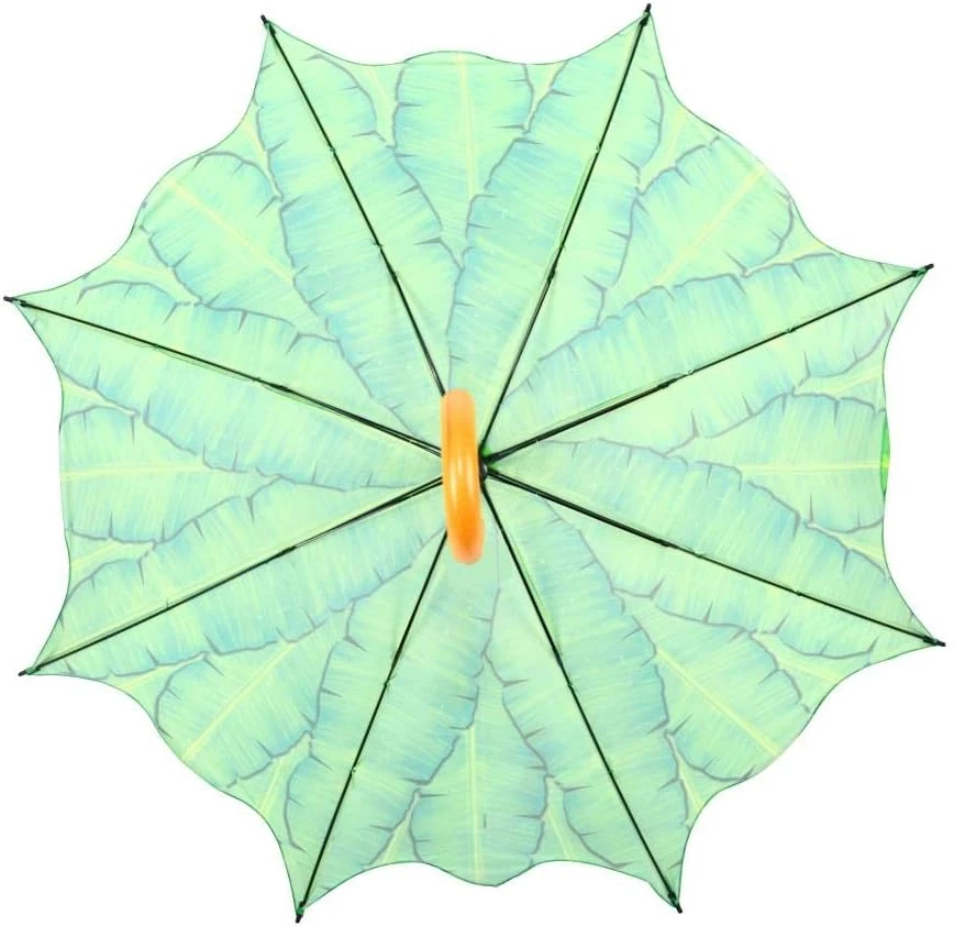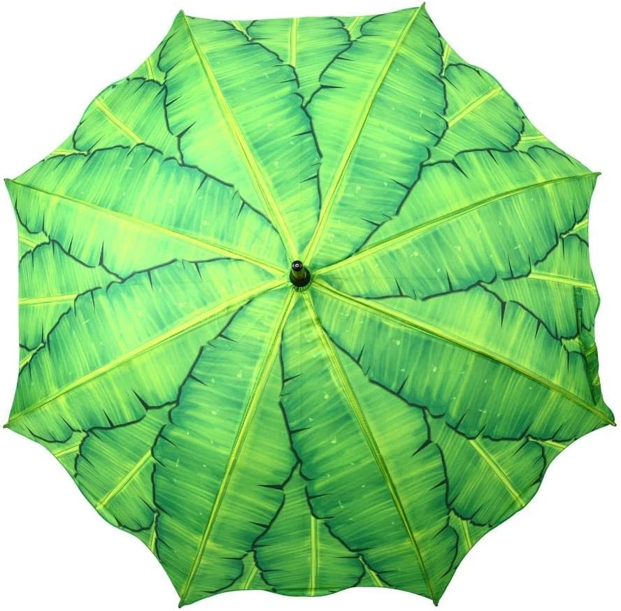 Bright and colorful umbrella makes a walk in the rain more fun Displays overlapped banana leaves when open Schima superba wood handle and ferrule complete the look of this eye-catching umbrella Fiberglass shaft with high-quality spring; sturdily constructed to provide years of service 40.9” wide x 34.6” high Esschert Design TP336 Banana Leaf Umbrella, Green. This bright and colorful umbrella displays overlapped banana leaves when open. The Schima superba wood handle and ferrule complete the look of this eye-catching umbrella. Features a fiberglass shaft with high-quality spring; sturdily constructed to provide years of service. Dimensions: 40.9” wide x 34.6” high. Weighs 1 pounds. Esschert "More Than A Design"