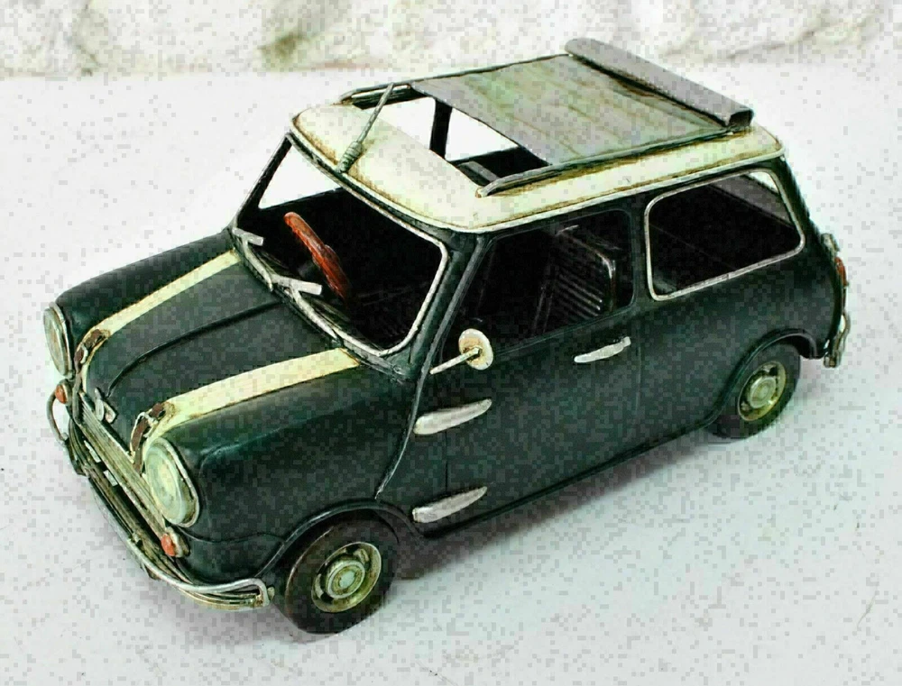 USA seller Tin Plate Model of 1960 Mini Cooper Green With Open Top Roof Vintage USA seller Tin Plate Model of 1960 Mini Cooper Green With Open Top Roof Vintage Decorate for any table, desk, or shelf in sporty fashion with Our Rustic 1960 Mini Copper car. Featuring a rustic iron frame, this charming vintage Classic Car includes a fine detail's. The black metal seat are finished in natural colors. For more than 20 years, European Finery has been providing high quality sculpture, accessories, and decor for any room for its customers' homes. Based in New York area, We grown to become one of the largest importers and wholesalers of home decor and hand made sculptures in the country. Whether you're looking for accent Sculpture, wall decor, vintage Toys, or just about any outdoor lifestyle sculpture , We Became a proven and trustworthy name that has become synonymous with superiority. 1. Beautifully handmade and so each piece is a unique collectible and show piece for your home: 2. Overall measurement (approx. H X W) : 4 x 8.5 Inches 3. Key features : Decoration & parts comes with stickers to match your scene, Plastic die-cast metal, Ultra-precision design with some moving parts (where applicable), Decoration parts & decals accurately reproduced. In order to show retro style, flaws such as rusting, scratching, peeled off painting and so on are designed and manufactured on purpose Highly recommended car model for home or office decoration, gift Metal Art Tin Model - Mini Cooper 1;18 Scale Green + White Roof Metal www.bronzhaus.com Video will open in a new window Using the eBay App? Paste link into a browser window: [isdntekvideo] Shipping Terms : Most of our items are shipped via USPS (United States Postal Service) mail or UPS. Most orders are shipped within 24-48 hours of purchase. Please be aware that not all items are available for USPS shipping due to size and weight. We do ship to Hawaii, Alaska, Canada, Puerto Rico, APO/AE, and U.S. Virgin Islands, however, an additional charge may be required. Please contact us before making any purchases in these areas. For Non-USA customers, you may be responsible for all duty, tax, brokerage fees that may be due upon delivery (shipping costs cover freight charges only). We also ship internationally. Please refer to the "Shipping and Handling" chart for the rates for each area. Payment : We accept just about any form of payment. PayPal, Master Card, Visa or American Express credit cards. Money orders, cashiers checks, and even personal or business checks. For governmental institutions, we will also accept a purchase order. Please understand that for personal or business checks we have to wait for the check to clear (usually 7 days) before shipping. Condition : New Sealed Box,This is Stock Photo, Slight Color Variation!! Listing and template services provided by inkFrog