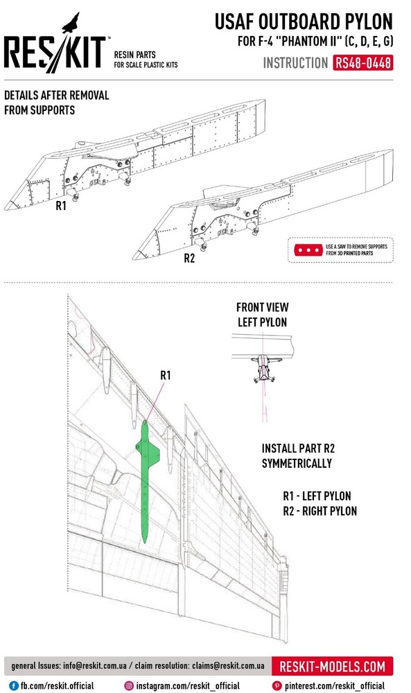 USAF Outboard pylons for F-4 "Phantom II" (C,D,E,G) (2 pcs) (3D Printed) Scale 1:48 ResKit RS48-0448 - for Plastic Model Kit Scale: 1/48 Manufacturer: RESKIT (Accessories for Scale Plastic Kits) Country/Region of Manufacture : Ukraine Features: Kit Condition : New in Box Type of equipment : Aircraft Type of product: PYLONS / BOMB RACKS Recommended kit: Any Category: RESIN & 3D ACCESSORIES USAF Outboard pylons for F-4 "Phantom II" (C,D,E,G) (2 pcs) 3D Printed pylons for F-4C, F 4C, F4C, F-4D, F 4D, F4D, F-4E, F 4E, F4E, F-4G, F 4G, F4G, PHANTOM II for Scale Aircraft Model Kit ---------------------------- If you have a desire to procure a GREATER NUMBER OF ITEMS THAN WHAT IS CURRENTLY DISPLAYED, kindly let us know, and we will happily modify our offerings to suit YOUR EXACT QUANTITY NEEDS. ---------------------------- >>> Visit our eBay store! <<< You will find everything you need at great prices. Reskit: The Ultimate Upgrade for Your Scale Models Reskit is the leading provider of upgrade sets for scale models, offering a wide range of products to enhance the realism and detail of your models. Our sets include everything from engines and interiors to exterior accessories and weapons. Whether you're a beginner or a seasoned modeler, Reskit has the upgrade sets you need to take your models to the next level. Here are just a few of the benefits of using Reskit upgrade sets: Increased realism and detail: Our sets are made with high-quality materials and components that will add a touch of authenticity to your models. Improved performance: Our sets can help improve the performance of your models, making them more realistic and engaging. Reskit upgrade sets are the perfect way to add realism, detail, and performance to your scale models. With our wide range of products, you can find the perfect upgrade set to transform your models into showpieces.