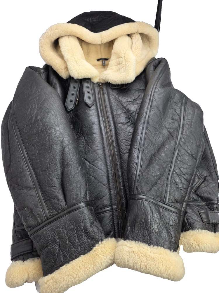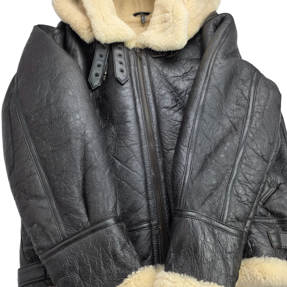 Ted Baker Leather Shearling Sheepskin B-3 Bomber Aviator Flight Jacket S / M