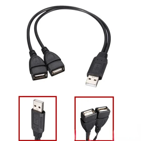 USB 2.0 Double Splitter Adapter Cable 1 to 2 Extension
