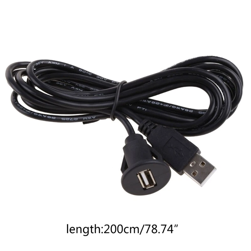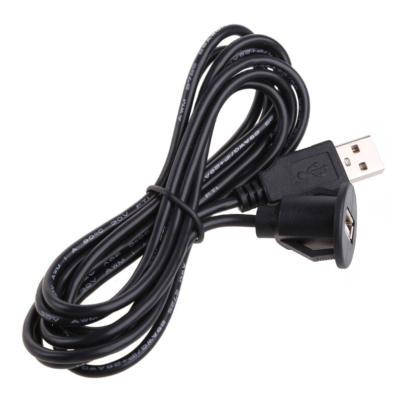 Description: brand new and high quality Description: This handy mountable USB extension can be used to either provide a flush mounted USB input on your or other surface. This USB estension mount is designed for in car use and is for any car stereo equipped with a USB input. Features: USB 1.1 / 2.0 (Hi-Speed) Cable for standard USB devices up to USB version 2.0 Designed for in car but can be used for any application Use for PC Laptop or USB charger's USB port,not only for charging ,but also can transfer data Use an existing hole or cut a hole in your dashboard and clip in the socket to flush mount it to your vehicle's Cable length: 2M/6ft Diameter:2.5cm Material:Plastic+Metal Color: Black Package includes: 1 x 2M USB 2.0 Male to female Extension Cable
