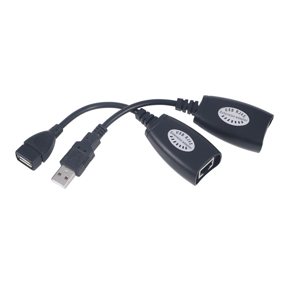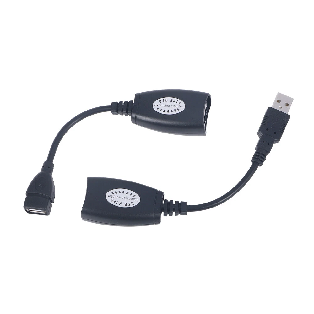 Specification: Type: Adapter/Converter Colour: Black Cable Type: USB Signal length: up to 150ft Connector A:USB male to RJ45 plug Connector B:USB Female to RJ45 Plug Cable length: 0.5ft Output Voltage: 5V Features: 1.Lightweight, portable, rugged and durable. 2.One cable is USB header to RJ45 connector, the other cable is USB female to RJ45 connector. 3.Self-powered, no external power supply required, plug and play, no driver or software installation required. 4.Using standard Cat5, Cat5E, Cat6 patch cables eliminates the length limitation of USB cables, making the device placement more flexible. 5.This adapter will allow you to place a USB camera, printer, webcam, keyboard/mouse extension, or other USB device exactly where you want it without having to move it around your computer. 6.Extend the distance between your USB device and your USB enabled computer up to 150 feet. Product Includes: 1xUSB female to RJ45 extension adapter 1xUSB male connector to RJ45 extension adapter On May 13, 2025 at 02:18:26 PDT, seller added the following information: