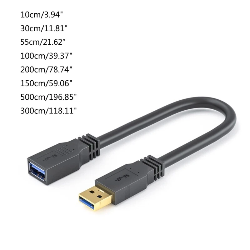 Features: This USB3.0 Extension Cable is for extending the reach of your USB devices while maintaining faster data transfer speeds and charging capabilities. Made from high-quality plastic materials, this cable is durable and lightweight, making it easy to carry Suitable for PC, laptop, TV, mobile phone, hard drive, mouse, keyboard, U disk or other USB device; This usb extension cable ensures stable and faster data transferring without noise or signal loss. USB extender is extremely durable and sturdy; Constructed with multiple layers to minimize interference, and is corrosion-resistant for signal-clarity Specifications: Material:Plastic+Copper Color:Black Length:Approx.10cm/3.94in, 30cm/11.81in, 50cm/19.59in,100cm/39.37in,300cm/118.11in,500cm/196.85in,150cm/59.06in, 200cm/78.74in(Optional) Package Includes: 1xUSB3.0 Extension Cord note: Please allow 1-2cm errors due to manual measurement,please make sure that you do not mind before you order. Due to the difference between different monitors, the picture may not reflect the actual color of the item.