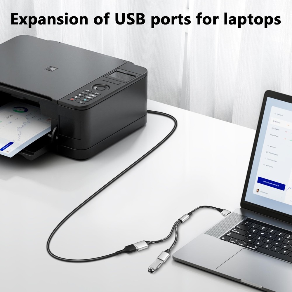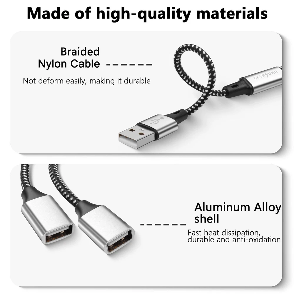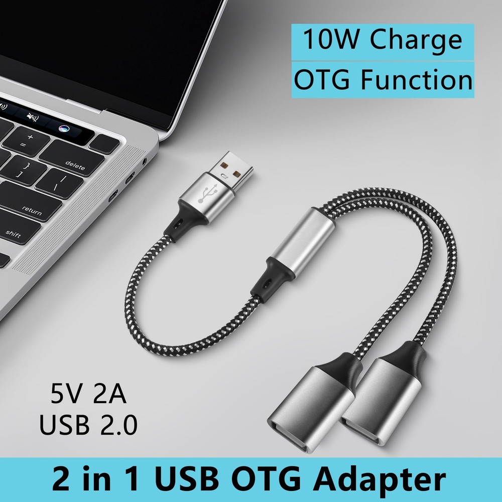 USB splitter 2 port usb 2.0 y cable printer share lead female, support 480Mbps Data Transfer and charging. Give you the ability to connect two devices to two standard USB-A port when you want extra flexibility. Ideal for mouse, keyboards, cameras, smartphones ; not recommended to charge high-powered devices such as tablets. Specification: Function: Data transmission + charging 1. when two USB A port are in use at the same time, only supports charging 1.5 Amps of power output and USB 2.0 functions. 2. Do not support Audio/Earphone & microphone signals. 3. Devices Simultaneous Charging:Use two devices at the same time without hassle. Durable: The usb 2.0 splitter made with aluminum shell and nylon braided jacket to withstand daily twists and pulls, rust free,which is lightweight and easy to carry. Plug and play, no driver. Packing List: 1x USB Y Splitter Cable 1 Male 2 Female USB splitter 1 in 2 out: This USB 1 Male to 2 Female Extension Cord Connector can split a USB port into 2 usb port for connecting 2 USB A port devices to your desktop laptop at the same time. Do not support Audio Earphone and microphone signals 2 USB Female Support data transfer and charging: This usb otg adapter splitter cable offers an easy way to extends your USB port. It can provide data transfer speeds of up to 480 Mbps and also supports up to 1.5 Amps of power output Note: This USB 2.0 Y Splitter Charger Cable CANNOT charge IOS devices. And not work for car audio, Andriod Auto . As these systems do not support USB hubs Plug and play: There is no additional drivers or software installation required. You can simply plug it in your device and start using it.An easy way to extends your USB connection to the computer or laptop Widely Use: This USB Splitter Cable is commonly used in USB 2.0 device, the usb c female port and the USB female port compatible with USB Charger Cable,USB Flash Disk ,USB Contoller,Hard Drive,Mouse,Keyboard etc