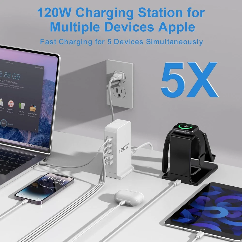 USB C Charger Block 120W GaN Fast Charging Station for Multiple Devices USB