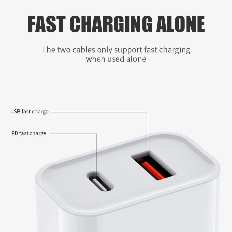 Features for Wall Charger: Made of high quality ABS material,ensuring durability and a smooth finish. Standard AC charger (US plug) Wide Compatibility: Ideal for almost all Phones, Electric Appliance, MP3 players, smartphones, e-book readers, Bluetooth speaker, more Auto adjustable 100-240V input fits world travelers in most countries High-Speed Charging: The USB-C port supports a maximum power output of 20W. Dual Port Fast Charging:Charging faster and safer than 1A adapter (Charge your iPhone 15 up to 50% capacity in just 30 minutes with the original cable. ) Auto stop charging after full charged, save energy and keep it safe Portable design, convenient to carry Light Weight: 40g (1.1oz) Features of Charger Cable: Ultra fast data transfer Supports quick charging Type-C reversible connector simplifies the connection. Plug and unplug easily without checking the orientation. Interface type: USB Type-C Charging Rate: 2.4A Data Transmission Rate: Up to 480Mbps Material:PVC Durability: Flexibility Testing: Over 10,000 bends Connection Durability: 5,000 insertions Cable Length: 1/2/3m (3/6/10 ft) Convenience: weighs only 30g Compatible with: For iPhone 15/15 Plus/15 Pro/15 Pro Max(Type-c to Type-c Cable) For iPhone 14/14 Plus/14 Pro/14 Pro Max For iPhone 13 Pro Max/13 Pro/13/13 Mini For iPhone 12 Pro Max/12 Pro/12/12 Mini For iPhone 11/11 Pro/11 Pro Max For iPhone X/XS/XR/XS MAX For iPhone SE 2020 For iPad Pro 12.9" 2018/2020 For iPad Pro 11" 2018/2020 For iPad Air3 10.5" For iPad Mini5 7.9" For iPad For Samsung Galaxy S20/S20+/S20 Ultra For Samsung Galaxy S21/S21+/S21 Ultra For Samsung Galaxy S22/S22+/S22 Ultra For Samsung Galaxy S23/S23+/S23 Ultra For Samsung Galaxy Note 20/20 Ultra For Samsung Galaxy Note 10/10+ /9/9+/8/8+... For Motorala Series Phone For LG Series Phone For Other Phone Packages include: Depend on the quantity option you choose