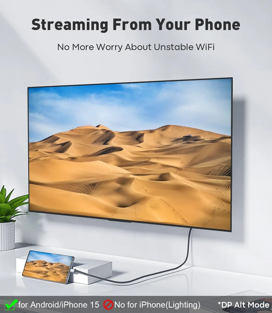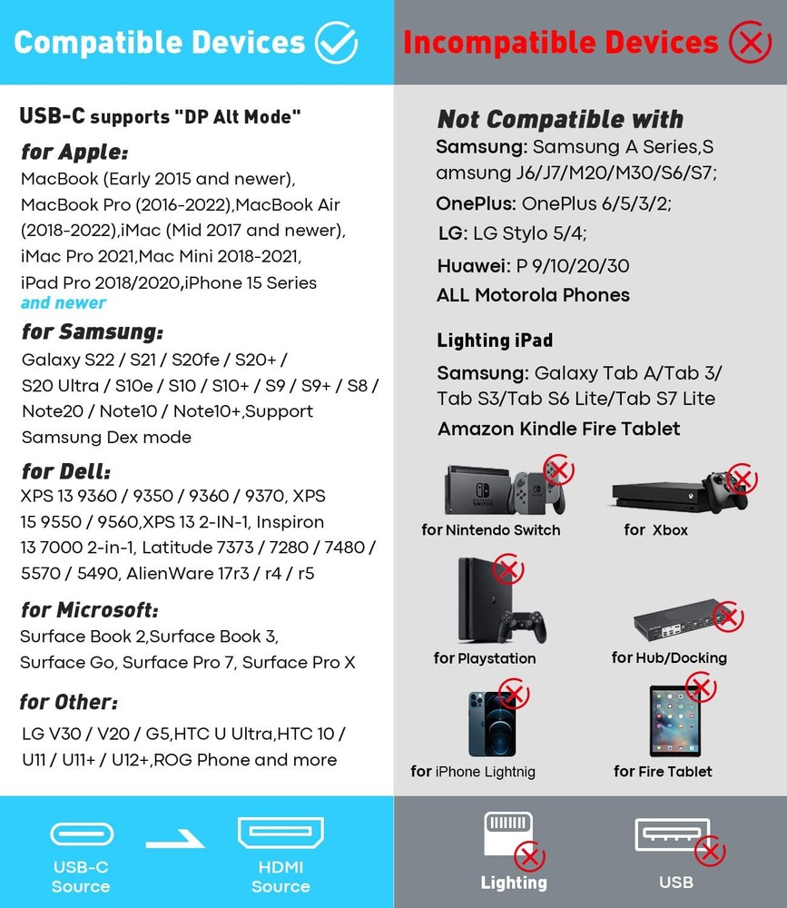 USB C to HDMI Cable 3Ft | 4K High-Speed USB 3.1 Type-C to HDMI Cord [Thunderbolt 【Compatible & Reliable HDMI Cable】USB C to HDMI Cord is plug and play, no driver installation required, providing you with a convenient and fast solution to instantly turn your device's USB-C port into an HDMI port with no lag, no flicker and no wasted time. Connect one or two monitors/TVs with resolutions up to 4K@30Hz. Make sure your input and output devices both support 4K 【4K UHD Visual Feast】Use the USB C to HDMI Cable with USB-C devices to transfer 4K Ultra HD content directly to a monitor/TV/projector equipped with an HDMI port. Never miss a game winning touchdown or your favorite TV episode again.Direct HDMI cable from your phone to TV will mean you don't have to worry about projection problems due to unstable Wifi.*Note: Only supports Android phones with video output function 【Thunderbolt 3/4 Compatible】The Thunderbolt 3/4 to HDMI cable compatible with all USB-C devices that support "DP Alt Mode" and Thunderbolt 3/4 ports; Compatible with MacBook Pro 2016-2022, MacBook Air 2018-2022, iMac 2017/2020, iMac Pro 2021, Mac Mini 2016 -2021, iPad Pro 2018/2020, iPad Air 2020-2022, iPad Mini 6, supports M1/M2 devices, Surface Book 3, Surface Pro 7, Surface Laptop 3, Chromebook, Dell XPS 13/15, iPhone 15/15 Pro/15 Plus/15 Max,Galaxy S22/S21, Note 20/10, LG V40 and More 【Sturdy & Long-Lasting Design】The slim and lightweight one-piece aluminum housing is corrosion resistant for optimal heat dissipation; The Type C to HDMI cable adopts the 24K gold-plated connectors and multi-layer copper shielding to minimize signal loss and provide amazing clarity and smooth sound; the flexible nylon braided housing provides extra durability and strain relief without worrying about wear and tear, kinks and knots 【Worry-Free】USBC to HDMI Cable 3ft/1M . our professional brand UANTIN is committed to providing unique, affordable, high-quality products and attentive customer service, for which we offer a 24-month worry-free product warranty, 24/7 customer service and professional technical support. If you have any questions, please contact us through Amazon to get our fast response within 12 hours USB Type C to HDMI cable:USB C to HDMI cord can transfer 4K content from your laptop, mobile phone, or tablet to a larger display, providing you with clear and realistic images, which means you no longer worry about unstable WiFi Connectors: USB C 3.1 Gold-plated male (Input) HDMI 2.0 Gold-plated male (Output) Specification:Shape: Compact,lightweight,easy to carry Installation : Plug and Play,No driver or software installation required Gold-plated connectors : Optimize its performance,resist corrosion High-quality aluminum alloy:Excellent heat dissipation effect Nylon braided cable:Durable to ensure long-term use Ultra HD : Supports resolution up to 4K@30HzPackage Contents: 1X USB C to HDMI Cable-3FT-Gray Note: 1.This is NOT a bi-directional 2.Make sure that your devices support 4K@30Hz resolution, otherwise 2K@120Hz,1080P screen display may appear 3.Before use, please modulate the display to the HDMI port to receive the signal Shipping We offer FREE shipping on all orders! We ship within Three business days of payment, usually sooner. We use a selection of shipping services such as UPS, FedEx, USPS etc. We only ship to the lower 48 states, no APO/FPO addresses or PO Boxes allowed. Local pickups and combined shipping options are not provided at this time. Return You can return a product for up to 30 days from the date you purchased it. Any product you return must be in the same condition you received it and in the original packaging. Please keep the receipt. Payment We accept payment by any of the following methods: PayPal Please pay as soon as possible after winning an auction, as that will allow us to post your item to you sooner! Feedback Customer satisfaction is very important to us. If you have any problem with your order, please contact us and we will do our best to make you satisfied. Contact Us If you have any queries, please contact us via ebay. We usually respond within 24 hours on weekdays. Please visit our eBay store to check out other items for sale! Thank you for shopping at our store.