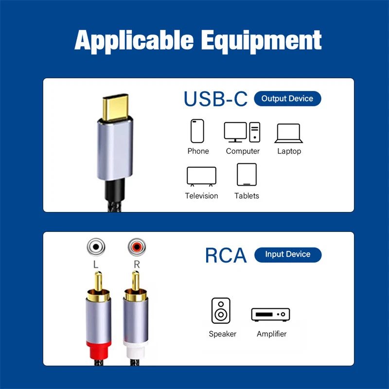Wider Fit: With a high-end DAC chip, the USB C to RCA Audio Jack Cable fits most Type-C/Thunderbolt 3 devices, compatible with iPhone 15 Pro Max/15 Pro/15 Plus/15, Samsung Galaxy S23/S23 Ultra/S23+/S22/S22 Ultra/S22+/S21 Ultra/S21+/S21/S20 FE/S20 Plus/S20 Ultra/S10 Lite/Note10+/Note20 Ultra , iPad Air 4/Air 5th 10.9inch/mini 6, 12.9/11 iPad Pro 2021/2020, Google Pixel 6/6 Pro/5/5a, OnePlus 9 Pro/10 Pro/Nord, PS5, MacBook Pro 14" 16" 2021. Perfect for a phone without a 3.5mm jack Upgraded Durability: USB C to 2 RCA Stereo Audio Cable is built to last longer. Gold plated connectors and aluminum alloy shells resist corrosion & oxidation and ensure optimum sound quality. Oxygen-free copper provides maximum conductivity and durability. The extended wire joint design protects the audio cable from bending Enhanced Flexiblity : The USB C to 2RCA Phono Cable adopts soft flexible PVC jacket to avoid knots and make it easy to roll up for tidy storage. The USB C Audio Cable fills your life with music and endues better audio enjoyment