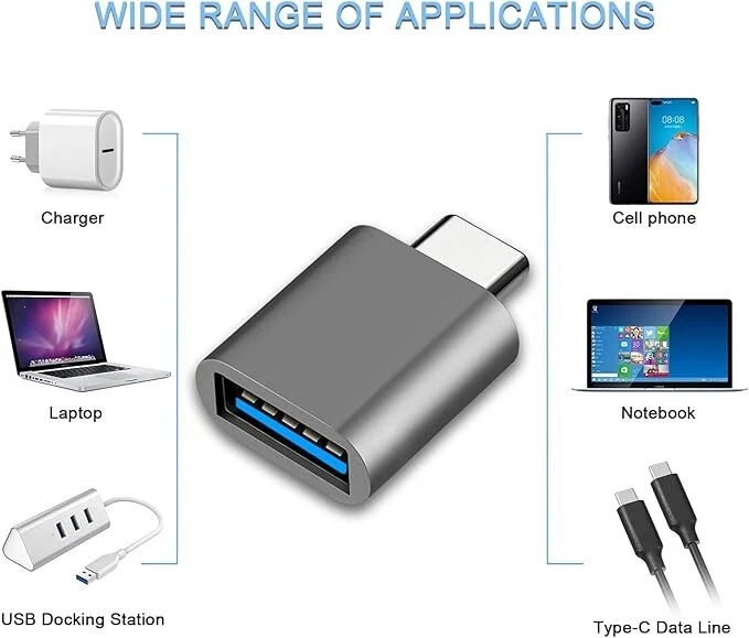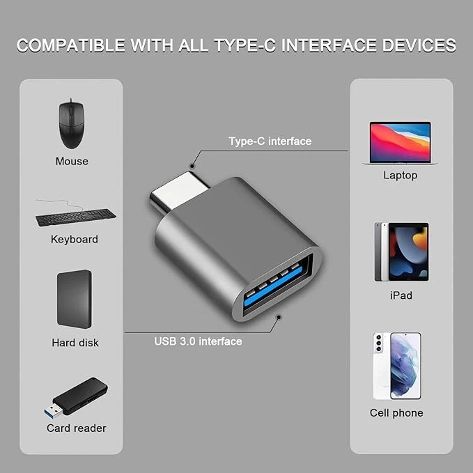 Free eBay listing template designed by dewiso.com USB C to USB Adapter, Type C Thunderbolt 4 OTG Converter, USB C Male to USB 3.0 Female Adapter (3-Pack) for Apple MacBook Pro, Mac Book, iPad, Samsung Galaxy S20-S23 and More (Black/Grey/Silver) Premium Materials and Design: Our adapter features an anti-interference zinc alloy metallic housing with a minimalist design, ensuring a stable and reliable connection every time. The slim design won’t block adjacent ports, significantly enhancing usability Broad Compatibility: This adapter is compatible with iPhone 15 series, MacBook Pro after 2016, MacBook Air after 2018, and most laptops, tablets, and smartphones with a USB Type C port, meeting a wide range of device needs High-Speed USB 3.0 Transfer: Supporting USB 3.0 protocol, it provides high-speed data transfer and charging. Simply insert the USB C plug into the corresponding port of your device to connect flash drives or other standard USB A devices, allowing for data synchronization or phone charging Durable Connectors: The USB C and USB 3.0 connectors are engineered for enhanced durability, designed to withstand up to 10,000 plug and unplug cycles. Each adapter is made from spacecraft-grade aluminum alloy, offering excellent durability with vibrant coatings that enhance the device's appearance Economical and Practical: Our three-piece adapter set offers high quality at an affordable price. Each set includes three adapters, providing a better user experience and higher cost-effectiveness Contact us We can be contacted at any time through eBay messages if you have any questions, comments or product requests. We will respond to you within 24 hours and do our best to help you out! We encourage our customers to contact us with any questions or concerns! We'd like to be sure you are completely satisfied with your purchase. HAVE A NICE SHOPPING