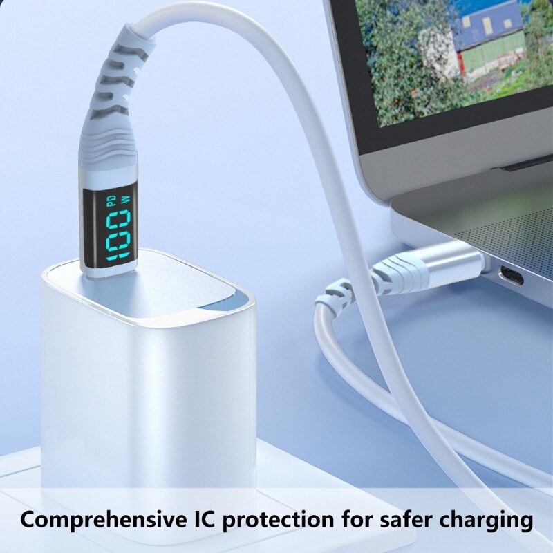 Features: Experience rapid charging and Fast Speed data transfer with 100W 2 Type C Aluminum Alloy Silicone Data Cable, featuring digital power display for energy management. Equipped with EMarker chip and six thickened cores in silicone, this cable ensures stable performances and reduced resistance for safe and fast charging. for users who demand reliability and safety, the cable caters to professional, and anyone in need of quick charging and data syncing. Perfect for office setups, travel, or home use, this cable keeps device without tangling or knotting. The liquid silicone not only feel comfortable to the touch but also offer heat insulation and flame retardance, ensuring device stays cool during current fast charging. Specifications: Materials: Silicone Size: 4x9x1cm Length: 0.5m,1.2m,2m(optional) Package Includes: 1PC 100W USB C to USB C Charging Cable note: Please allow 1-3mm error due to manual measurement. make sure you not mind before bid. Due to the differences between different monitors, the picture may not reflect the actual of the item. Thank you!