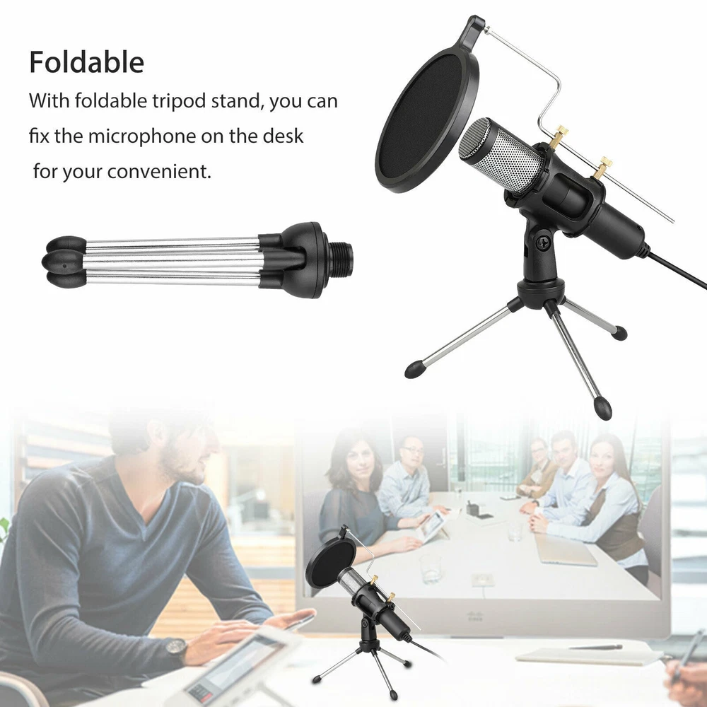 USB Microphone Kit Condenser Desktop Mic for Computer YouTube Gaming Podcasting Condenser Microphone, Professional Studio Recording Mic for Streaming, Podcasting, Singing, Voice-Over, Vocal, Home-Studio, YouTube, Skype, Twitch Features: ♪♪♪ 【Widely Used】Featured with 100 Hz-16000Hz frequency response and maximum 6.56 ft recording distance(adjust as your needs), provides vocal intelligibility and crispness, performed perfectly in reproduces sound. ♪♪♪ 【Anti-Spray Cover】Dual-layer anti-spray cover can prevent air spraying and protect the microphone, so you can clearly and effectively enter and transmit the sound ♪♪♪ 【Plug and Play 】Simply plug it into any available USB port. Compatible with Windows and Mac, you can create your own audio by simply selecting it as input in your computer settings. No need software to install. (recommended used below Windows 10, or the latest version of Windows 10) ♪♪♪ 【Foldable 】Folding Tripod Stand has Ultra-compact design for maximum portability, you can fix the microphone on the desk with the mini flexible head. Can adjust any angle you want. ♪♪♪ 【Non-slip】The tripod with anti-skip silicone rubber foot pads stabilize your microphone and free from tilt. ♪♪♪ 【Perfect for Vocals 】Perfect for live streaming, YouTube video, video conference, broadcasting, podcasting, interviews, voice recording, online chatting, games, Skype, etc. Specifications: Microphone Size(LxWxH): 5 5/8" x 1 1/4" x 1 1/4" (14.2 x 3.1 x 3.1 cm) Cable Length: 5'4" (162 cm) Frequency Range: 100Hz to 16,000Hz Sensitivity: −47±3dB (1.5V, 680KΩ; 0dB=1V/Pa, 1KHz) Output Impedance: Low Impedance (<680Ω) Directivity: Omnidirectional Operation Voltage Range: 1.0V-10V Max. Operation Voltage: 10V Current Consumption: 110dB S/N Ratio: More than 58dB Standard Operation Voltage: 1.5V Decreasing Voltage Characteristic: Within 3dB at 1V Package Included: 1x USB Microphone 1x Microphone Clip 1x Anti-spray Cover 1x Tripod Stand 2x Backup Rubber Bands 1x Manual Q: Does the microphone works with PC or Laptop? A: Yes, This microphone set comes with USB cable , plug and play with the USB cable with your computers, instantly enter your recording. (recommended used below Windows 10, or the latest version of Windows 10) Q: Does the microphone comes with a headphones? A: Sorry, the microphone kit are not included with the studio headphones. Q: Can i use the this microphone outdoor? A: Sorry,can not. 【Service Guarantee】 Thanks for visiting our Store! We try to accurately describe our item to the best of our knowledge, if there is any incorrect, please feel free to let us know via message. We hope you can contact us via message with any issue before you decide to leave neutral or negative feedback or open return request or case. We will reply to you as soon as possible when we see your email at work. Payment Delivery details Terms of sales About us Contact us Payment 1.We only accept PayPal as payment method. 2.The item will be shipped to buyer’s CORRECT and VERIFIED Ebay Address. 3.We are not responsible for the package lost due to incorrect address. 4.Our price do not including any custom or duty, VAT and local tax. 5.Payment must be received within 7 days of winning the auction 6.Please contact us if you need file an extension for any late payment. Delivery details 1.All item are shipped via DHL eCommerce or USPS Frist Class express Service within 2 business days once full payment is settled.If you can't get your items in time,please contact to us first,we will check and solve it for you soon.We will reply your mail within 24 hours normally. Sometimes have a little delay due to the weekend or holiday.If you can't get our mail after 48 hours,please check your spam or contact to us with other mail address or via ebay. 2.We only ship to confirmed Ebay addresses. Your Ebay address MUST MATCH your Shipping address. 3.If you want to change the address please E-mail us right after you pay for the item. 4.SERVICE TRANSIT TIME is provided by the carrier and excludes weekends and holidays. Transit times may vary, particularly during the holiday season. 5.If you have not received your shipment within 30 days from payment, please contact us. We will track the shipment and get back to you as soon as possible with a reply. Our goal is customer satisfaction! Terms of sales 1.Please contact us via eBay Message if you have NOT received item in 30 days , we will check it with post office, and then resend or refund any missing item. 2.i n the unlikely event that your product is faulty in anyway, you must contact us ASAP and then return it within 7 Days of receipt. 3.Return shipping fee should be paid by buyer if wrong item you bought (wrong model or wrong color) and item is defective. We will provide replacement or refund after we received and confirmation. 4.if you need return, please contact and get an address for return from us, then declare your package as “Return”, write your Ebay ID and item number outside About us 1. Dear buyers, we appreciate your business, if you are satisfied with our service, 2. Please leave us a positive feedback and rate the details of the transaction (Detailed Seller Ratings) with a "PERFECT 5 Star. 3. Your recognition will make us more confident to develop business and serve you better. 4. Our goal is to make sure you are a happy buyer and pleasant shopping with us. Please email us before leaving any 1 or 2 ratings, negative feedback or open any dispute. We understand the concerns and frustrations you might have, and will do our endeavor to resolve the issues. Please give us the opportunity to resolve any problem. Contact us 1. We strive for 100% customer satisfaction on every sale we complete. 2. If, for any reason you are not satisfied with your purchase, please contact us before leaving neutral or negative feedback. We will work with you. 3. We are wholesaler and exporter and we have served thousands of customers from all ov