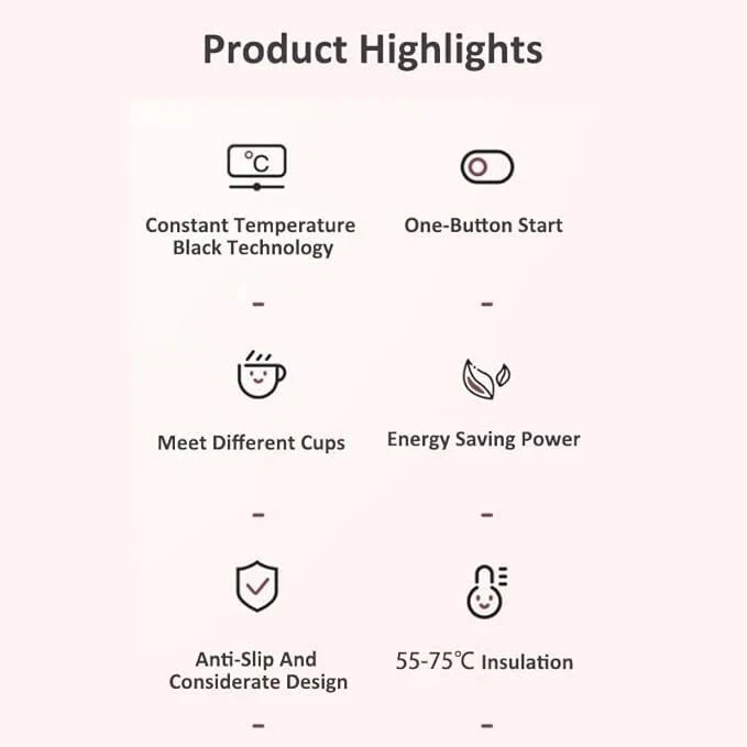 USB Electric Mug Warmer Cup Heater Coffee Milk Tea Water Heating Pad Coasters Feature: 1. Premium Quality Material: Made with high-quality materials, this coffee mug warmer is designed to heat up and maintain the temperature of various beverages and food items. It is perfect for heating tea, coffee, drinks, and more. 2. Three Temperature Settings: The electric coffee warmer features three temperature adjustment settings. It starts at a default temperature of 55 degrees Celsius and increases by 10 degrees Celsius with each press. The highest temperature reaches 75 degrees Celsius, and continuous pressing turns off the device. It allows you to choose your desired level of warmth for your beverage or food. 3. Portable and Convenient : With its lightweight design and compact size, this cup warmer heating plate is easy to carry and occupies minimal space. You can take it with you anywhere, whether you're at home, in the office, or traveling. Enjoy warm drinks and food anytime, anywhere. 4. Perfect Gift: With its beautiful and elegant design, this smart cup warmer makes an ideal gift for coffee enthusiasts and loved ones. It keeps your beverage warm throughout the day, making it a thoughtful gift choice for occasions such as Mother's Day, Valentine's Day, Thanksgiving, birthdays, or other special events. 5. Versatile Tea Warmer: This thermostat coaster not only keeps your coffee or tea hot but also works well for heating other beverages and food. It is a versatile product that adds convenience to your daily routine and enhances your relaxation time. Specification: Product Size: 112.00x112.00x20.00mm/4.41x4.41x0.79inch Material: ABS+Electronic Components Power supply: USB plug-in Rated Power: 20W Rated voltage/frequency: 220V/50Hz Product Size: Diameter 11.2CM Product color : white Heating plate diameter: 8CM Temperature range: three / 55 degrees / 65 degrees / 75 degrees Single weight: 138g Delivery Time From 7 to 14 days.