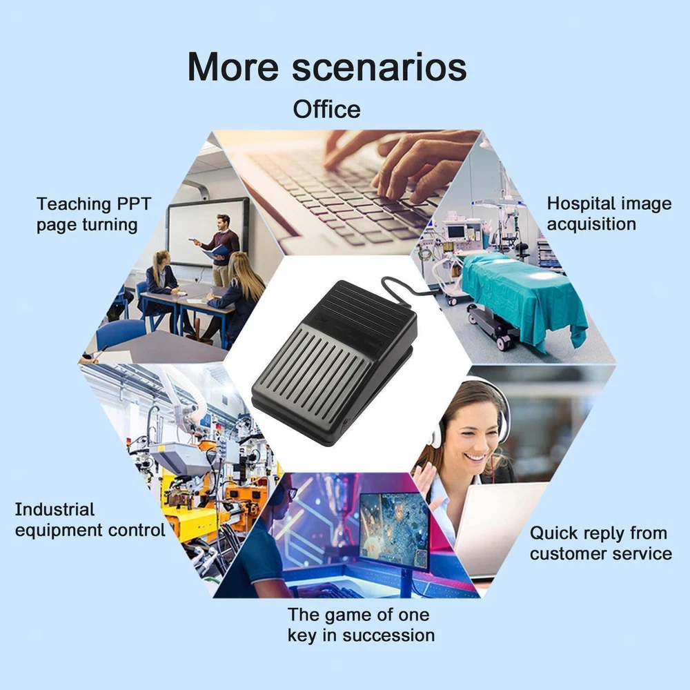 SAFE & SECURE SHOPPING 100% SATISFACTION GUARANTEED FAST SHIPPING Store Categories Store Categories You may also like USB Single Foot Switch Pedal Control Pre-Program Key Mouse For Keyboard PC Product Description Features: 1. The USB foot switch can control your computer with your feet. 2. It is used for playing games, factory testing, controlling instruments, helping the disabled and so on. You can be more efficient with your hands or feet. 3. It's the equivalent of a standard USB keyboard and mouse, but customizable through the setup software, it can define your footswitch to any key, key combination or mouse, no additional software required. 4. The model or style of pedals can be customized according to customer requirements. 5. Multiple foot pedals can be connected to one computer. You can define software with different keys depending on your for Windows system. After the setup is complete, it can be used on for Linux, for iOS, for Android and other operating systems. Package include: 1PCS Keyboard Adapter Shipping Returns Contact Us Payment Shipping 1. Items sent from US warehouse. 2.Receiving time = Processing time + Shipping time 3. Processing Time: Around 1-2 business Days 4. Shipping Time: 3-5 business day it may have a little delay during some holiday (such as Christmas),any problem ,please feel free to contact Returns 1. 30 days warranty from the purchased date. Please contact us via email before returning the defective item. 2.Our warranty does not extended to any product that are physically damaged or that are not under normal operating conditions as result of misuse or improper installation on the buyer/user's part. 3.Return items should include the original packaging and all accessories. buyers MUST contact us for the returning address. 4.In all cases, buyers pay shipping fees at their own cost to return products for exchange or refund. We will be responsible for the postage of replacements. Refund will be made upon receipt of the returned item. Contact Us Pls contact us if you have any problems,we will try our best to solve for you Payment We accept all verified payment from eBay. Copyright © 2022 Tongtool