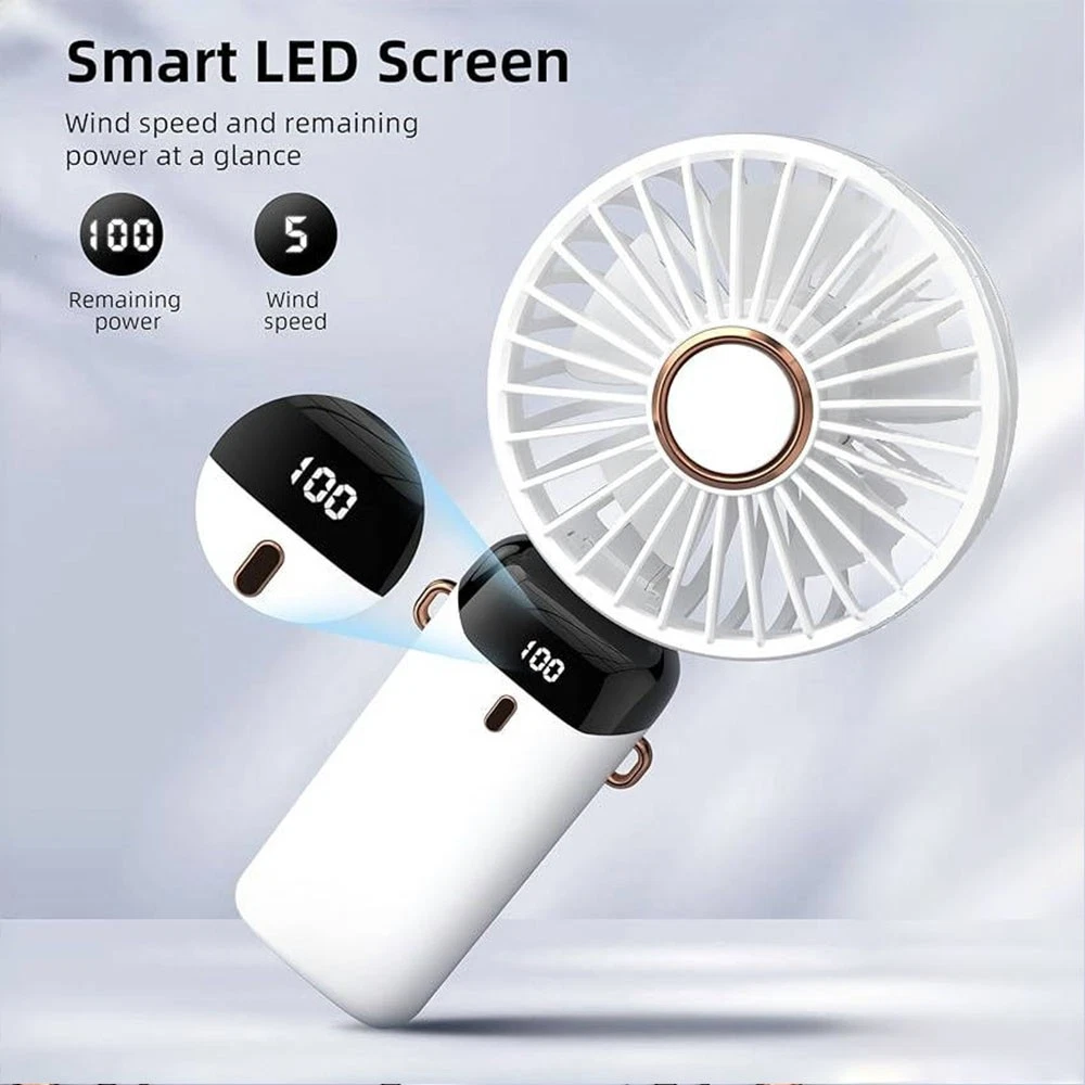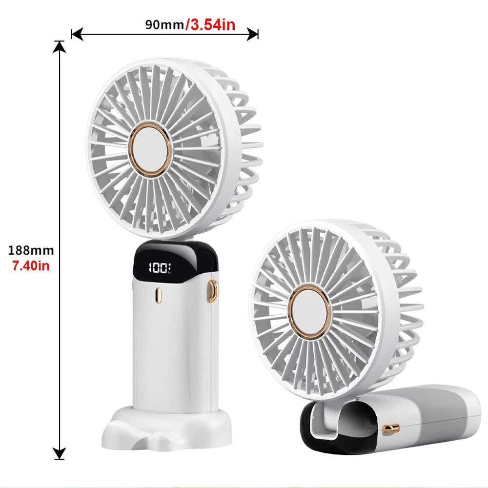 Portable Handheld Turbo Fan with Ice Cooling, 10 000mAh Rechargeable Personal Fan, 100-Speed Wind, Built-in Type-C Cable, LED Display,135° Tilt Foldable for Desk/Neck/Travel-white 【5-Second Rapid Cooling】 This handheld fan is equipped with a uniquely designed semiconductor cooling plate that activates instant 5-second cooling at the touch of a button, forming visible frost and water droplets on the cooling surface. The skin-friendly material delivers continuous sub-zero cold to your face and neck, combined with powerful airflow for immediate relief in sweltering heat 【10,600+ RPM Turbo Power High Speed Airflow】 Utilizing aviation-grade turbo fan technology, this portable handheld turbo fan generates an intense 15m/s (33.6 mph) wind speed, covering a 3m range—3x stronger than standard blade fans. Experience instant heat dissipation with penetrating airflow for wide-area cooling 【10000mAh Large Battery + Power Bank Function】 The rechargeable handheld fan features a built-in 9000mAh long-life battery for all-day operation without frequent charging. 12-48hr runtime (varies by speed). A Type-C port allows reverse charging for your phone, making it ideal for outdoor activities or emergency power needs 【100-Level Stepless Speed Control + LED Display】 The stepless knob enables precise adjustments in 0.1 increments, with an LED sc reen showing real-time wind speed (1-100 levels) and battery life. Customize your cooling experience with unmatched precision 【3 IN 1 Multi-Purpose Design】 Adjust to a maximum 135° tilt angle to use as a desk fan or hang around your neck as a neck-mounted fan—versatile cooling for every scenario Color box plastic packaging, high-end, beautiful and generous, is the best choice as a gift!