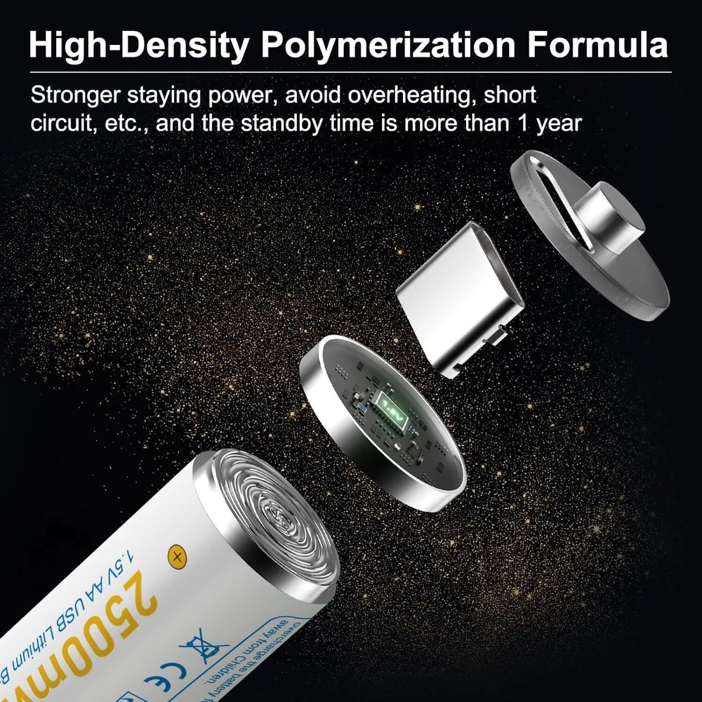 USB Lithium ion Rechargeable AA Battery, High Capacity 1.5V 2500mWh...