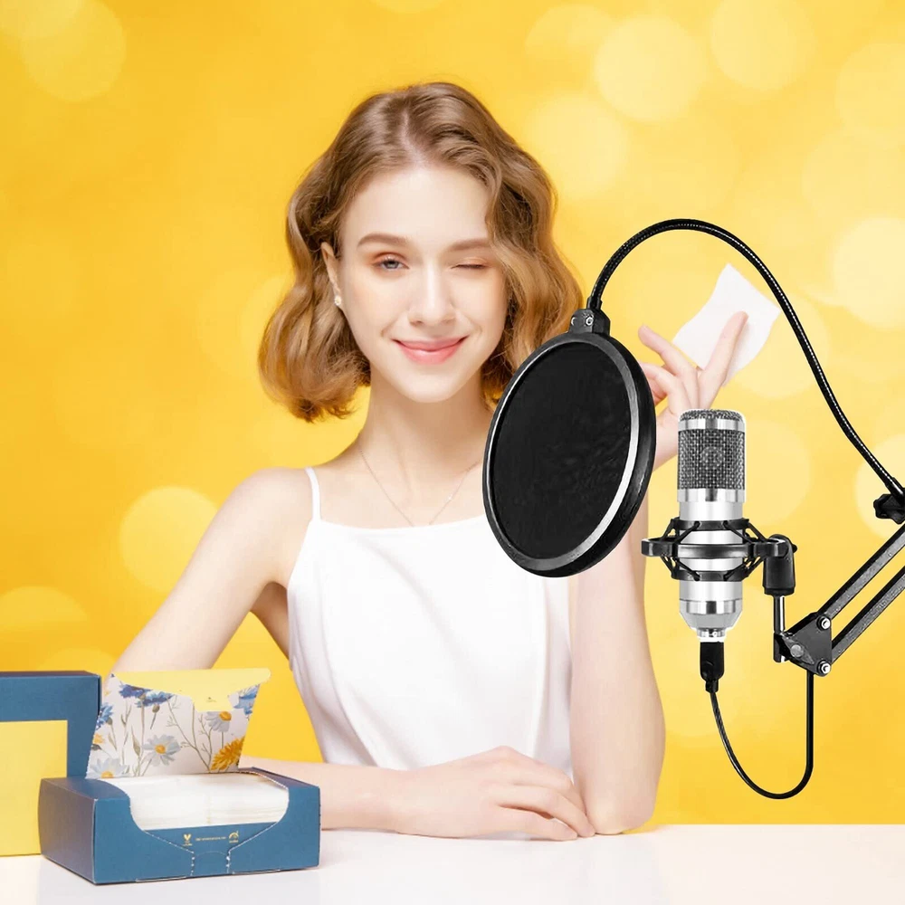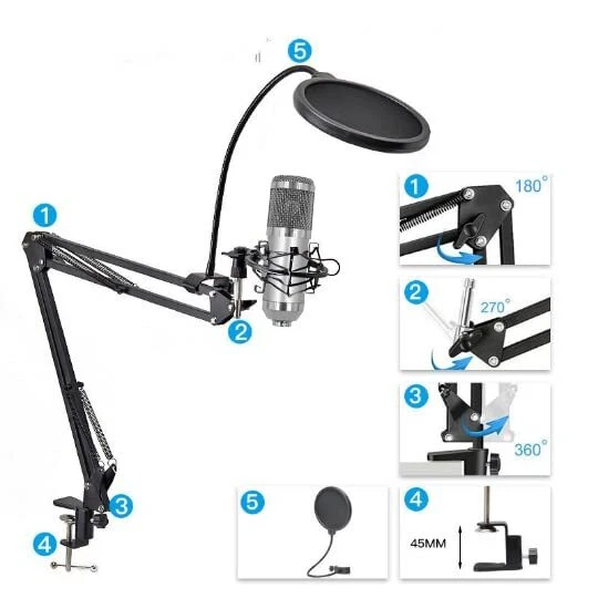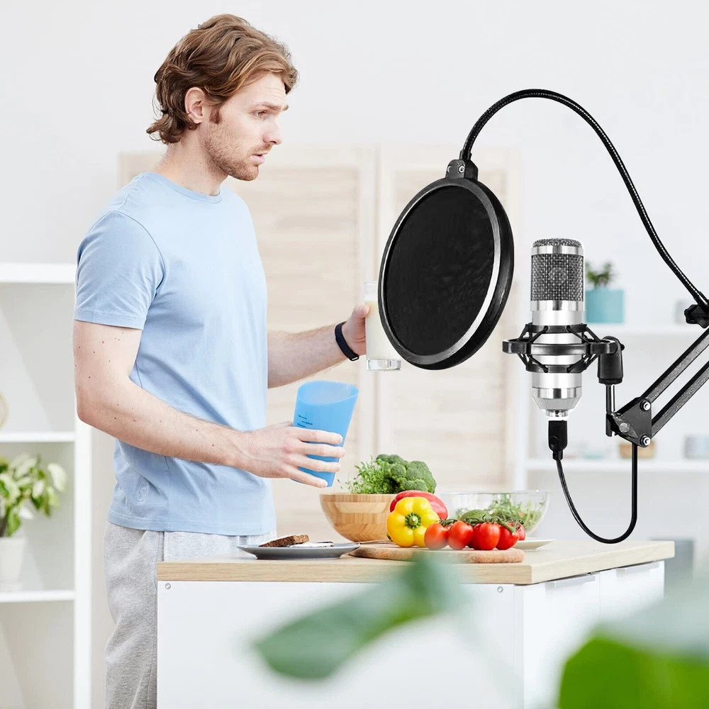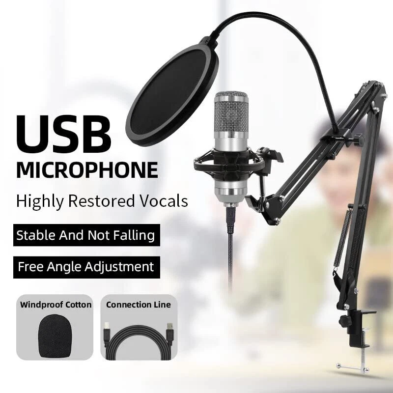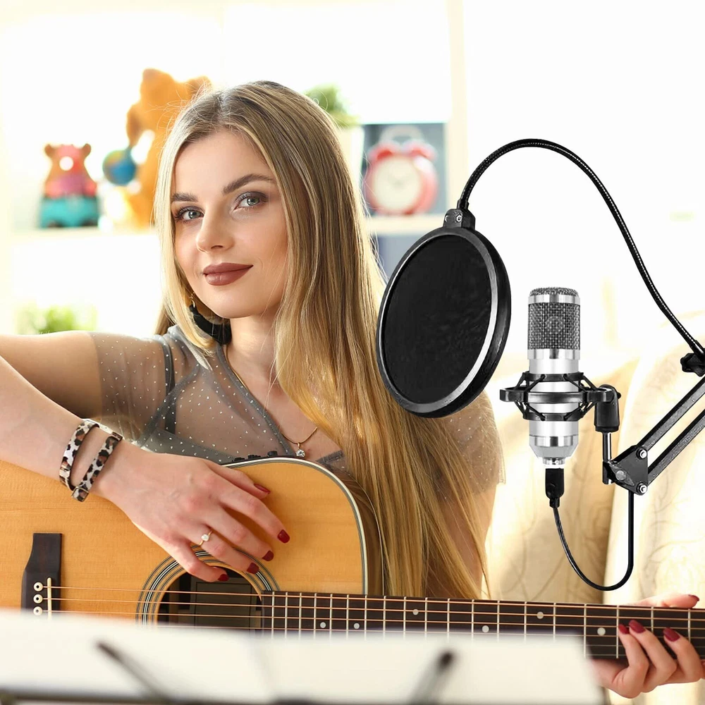 Polar Pattern: Uni-directional Frequency response:20 hz-20khz Sensitivity:45 dB ± 1 db Output impedance:150Ω ± 30% (1 khz) Load impedance:≥1000Ω Equivalent noise level 16 dba Current:3mA Signal to noise ratio:78 decibels Microphone output interface 3.5 mm Cable length:2.5 m Voltage: 48V Phantom power Dimension: Approx. 16 x 5 x 5cm/6.3 x 1.97 x 1.97inch Microphone Material: Steel net + Zinc alloy hand holding part [USB output]:USB Studio Microphone Kit provides a direct and convenient plug and play connection between personal computers and laptops without any additional hardware to record voice, podcasts and Skype. [Multipurpose Microphone]:The streaming microphone output results in a quiet, noiseless output while maintaining maximum signal gain, is detachable and easily portable, and is more suitable for a variety of scenarios. [Upgraded USB condenser microphone ]:192KHZ/24BIT microphone set using 16MM microphone stand and professional sound chipset, so that the USB microphone has a high resolution sampling rate. The microphone can capture the sound of different frequencies very well. Perfectly reproduce your sound and prevent distortion [Device Compatibility]:The Condenser microphone can be used on any cell phone, computer, tablet iPad, PS4, Xbox, Switch, Apple iOS, Android and any gaming platform. [Package included] The whole equipment included Condenser Microphone , Scissor Arm Stand ,Shock Mount, pop filter , Windscreen Foam , Table Mounting Clamp ,USB Cable