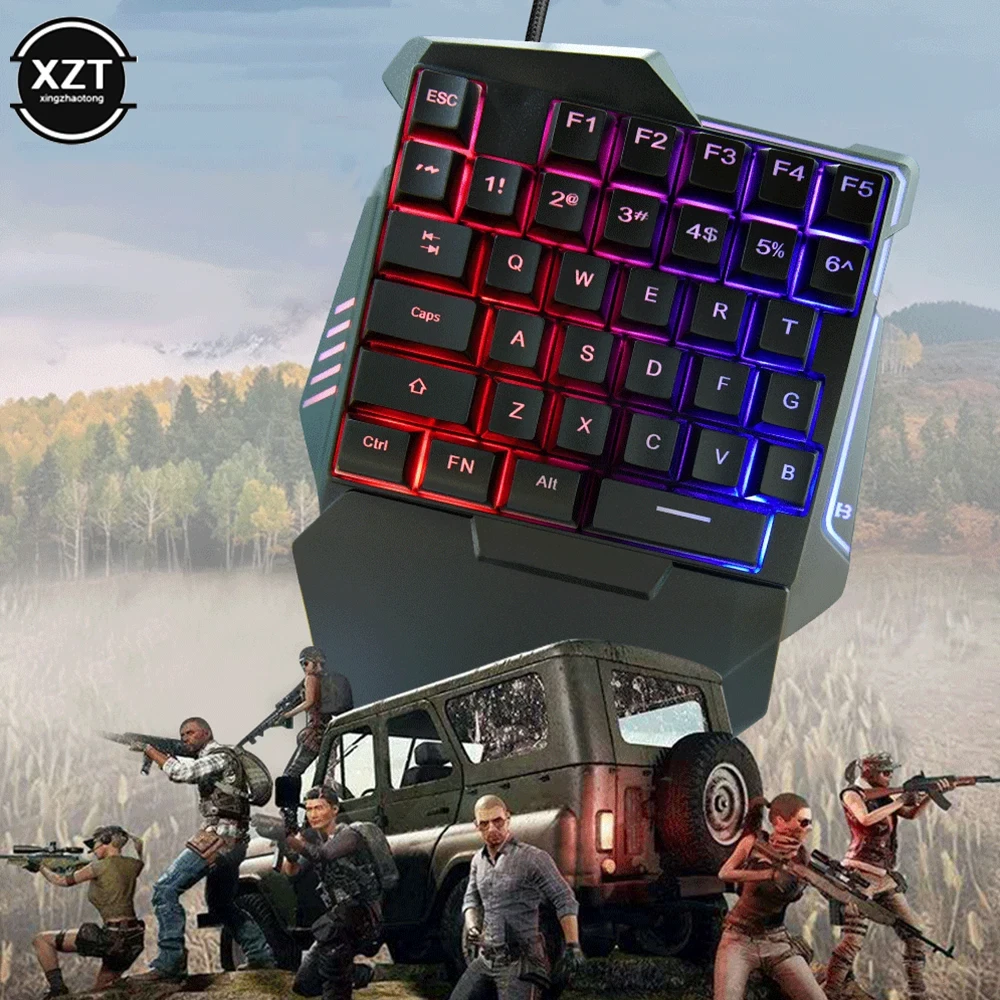 USB One-Handed Gaming Mechanical Keyboard Portable 35 Keys Mini Wired Keyboard