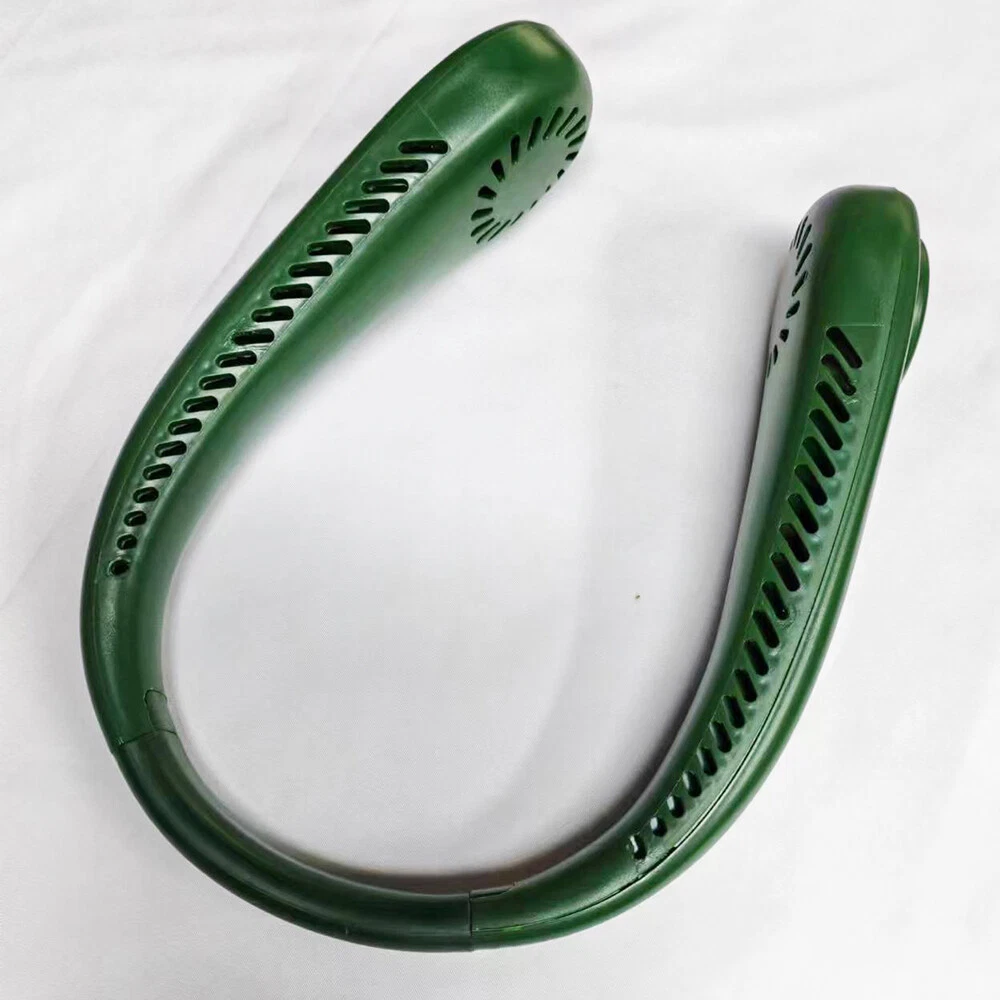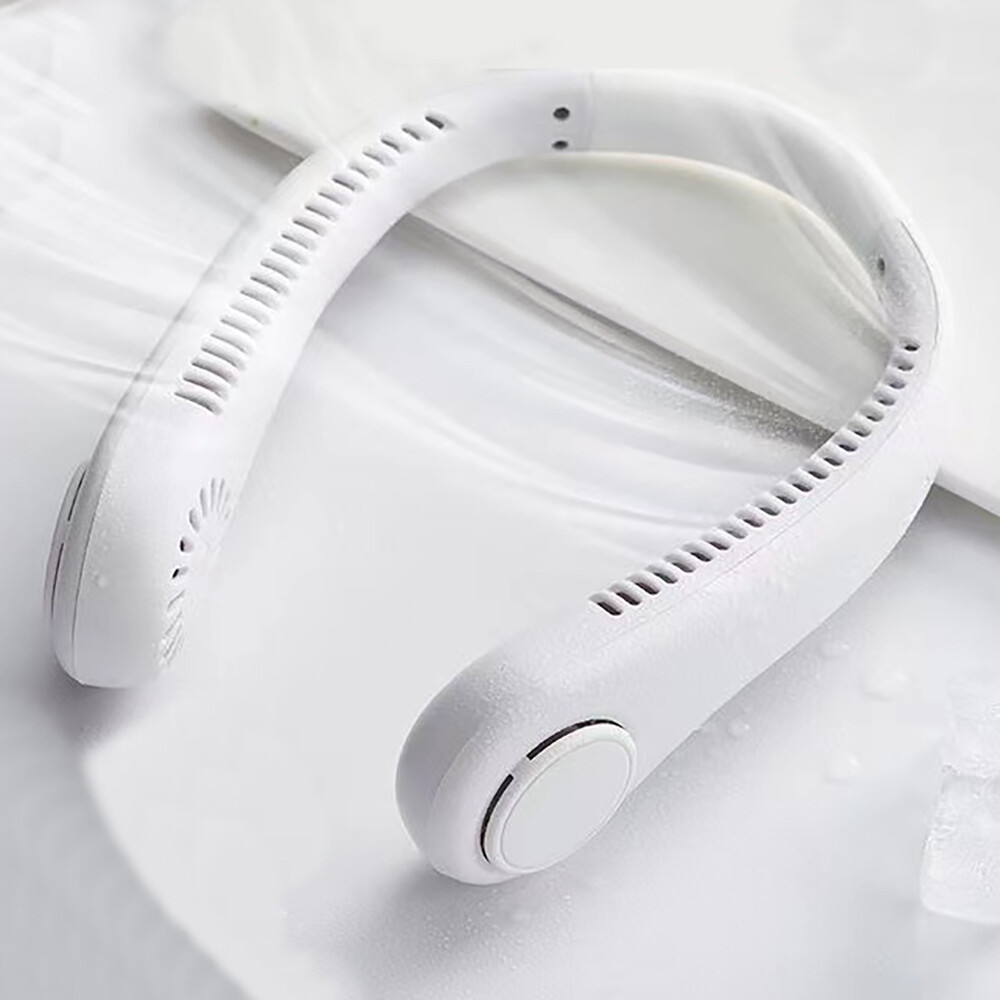 【Safety & 70 Air Outlets】 A novel neck fan that can send the wind without waving your hands by simply placing it on your neck.Designed without wings, it can be used safely by children and the elderly. With 70 air outlets around the neck, it can be used for the entire face around, which products enough air to keep you cool always. It is also nice as a companion for working in hot weather. 【Hands-free Design & Fashionable】Hand-free neck fan was designed as a headphone to free your hands anywhere; The fashion style makes you look cool and you can take it anywhere in hot weather. Good choice to as a gift for your family. 【3 Speeds】1000mAh large capacity batteries provide 20Mins-2hours working time (depending on different speeds). Adjust appropriate speed by pressing the power button repeatedly. 【Low Noise Design & Comfortable】The wearable neck fan’s motor has been modified so that noises of at least 25 dB can be generated while running. It is quite enough to hear your own breath. Made of Eco-friendly ABS and silicone. Makes the hands free neckband fan softer and more durable and quieter. 【Compact Design】Personal neck fans weigh about 9.4OZ and are ultra-light, putting less strain on the neck.When using the fan, you don't have to worry about your hair getting caught on the fan blades. Included: 1x neck fan 1x USB charge cable