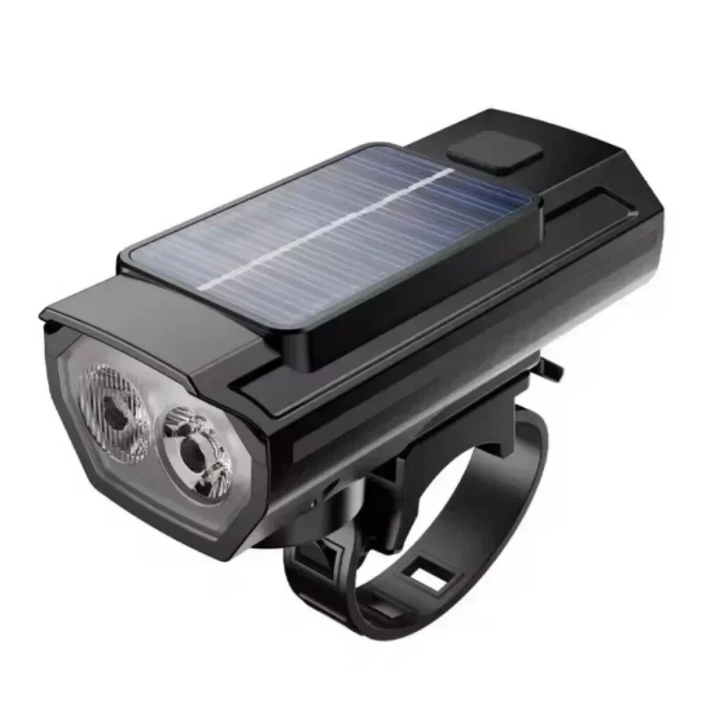 Solar Power Bike Headlamp with Horn USB Charging LED Bicycle Light 250LM Waterproof Bike Flashlight Bicycle Accessories Features: 1.Dual-Beam Illumination: Equipped with both high-beam and wide-angle lights, this bike headlight ensures long-distance visibility and a broad field of illumination for safer riding in all conditions. 2.Hybrid Charging Options: Featuring Type-C USB and solar charging capabilities, this bicycle headlamp offers versatile and convenient recharging options, ensuring you're never left in the dark. 3.Strap-On Installation: The LED bicycle light's band-style fitting system allows for quick and easy mounting, making it user-friendly for cyclists of all skill levels to attach and remove as needed. 4.Light & Horn Combo: This MTB road bike front lamp and horn setup saves handlebar space and reduces the overall weight on your bicycle, streamlining your ride and keeping essential functions within easy reach. 5.Weatherproof Durability: With its excellent sealing properties, this bike handlebar flashlight stands up to rainy conditions, giving you the confidence to ride in wet weather without compromising your light's performance. Specification: Origin: Mainland China Body Material: ABS Color: Black, Red, Blue Body Size (Excluding Base) : Approx. 94mm (3.70in)*40mm (1.57in)*38mm (1.50in) Net Weight: About 83g Lamp Bead: 2*LED Headlight Gear: High-Light - Low-Light - Flashing Lamp Brightness: 250LM Speaker Decibel: 120bd Battery Capacity: 1200mAh (Delivery Includes Battery) Charging Mode: Type-C USB Charging Note: Due to the different monitor and light effect, the actual color of the item might be slightly different from the color showed on the pictures. Thank you! Please allow 1-2cm measuring deviation due to manual measurement.