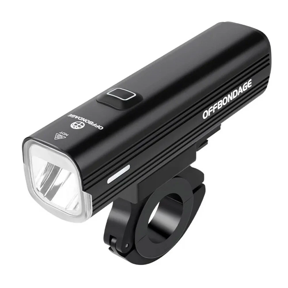 • 1000Lumen Brightness : The OFFBONDAGE Bicycle Light emits a powerful 1000Lumen beam, making it perfect for night rides and ensuring maximum visibility. • USB Charging : With its handlebar USB charging port, this bike light can be easily charged on the go, eliminating the need for complicated wiring or batteries. • Highlight and Power Bank Functionality : This product not only serves as a bike light but also doubles as a power bank, making it a versatile and practical accessory for any cyclist. • CE Certification : The OFFBONDAGE Bicycle Light is certified by CE, ensuring that it meets the highest safety standards and is safe to use while cycling. Product detail Fire: OFF BONDAGE Model: HR3-1000 Material: Aluminum Alloy Mode: 5 Modes Super Bright\\\ / High\\\ / Middle / Low\\ / Flash Waterproof: Daily Waterproof Lumen: About 1000Lumen Range: About 200M Battery: About 4500 mAh Charging Time: About 3-5 hrs Light Shows NOTE About Charging: 1.Please use the charging cable included in the package to charge, otherwise it may cause damage to the lights. 2.It can be used as a power bank ,but you need to prepare a conversion connector yourself
