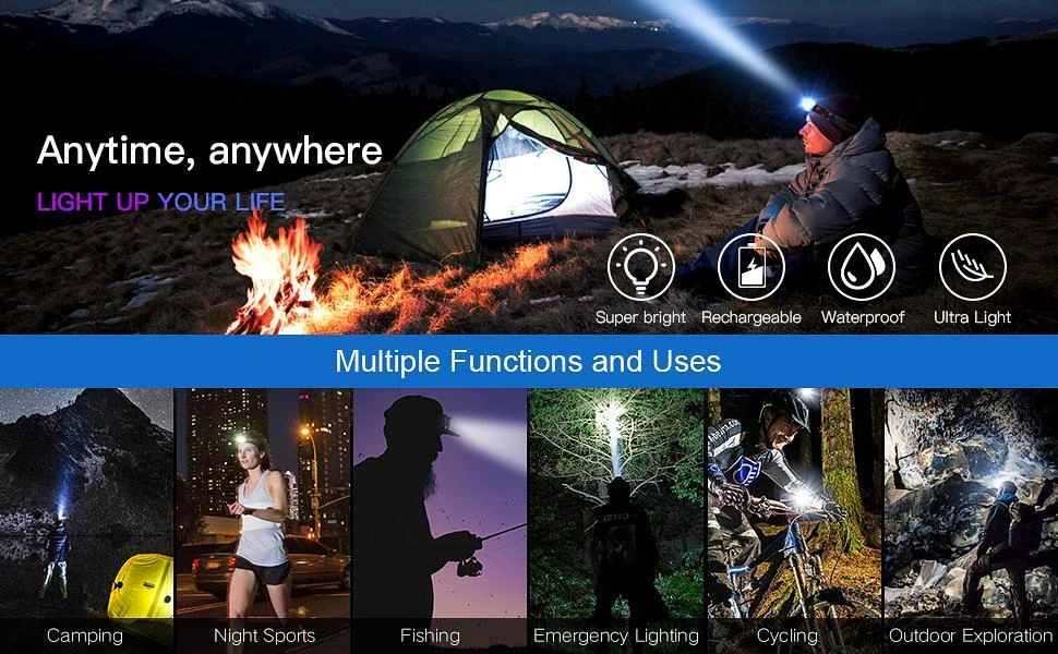 Free and fast shipping , shipping take up 1-7 Business Days 30 Day Return Accepted EASY PAYMENT via PayPal, Credit Card, PayPal Credit, Google Pay... USB Rechargeable Headlight Battery LED Multicolor Plastic Portable Waterproof Specification: Product size: 62x38x30mm/2.44x1.5x1.18in Product net weight: 71g Product material: aluminum alloy + ABS LED: 1xXPG + 2xCOB LED Light color: white light + red light Maximum power: 5W Maximum Lumen: 500LM Lighting distance: 100 meters Waterproof grade: IPX4 Switch type: push switch + induction switch Charging interface: micro USB charging Battery: 1x1200mAh polymer lithium battery (included) Running time (maximum): 3-5h Gear: 6 gears Lighting: XPG strong light-XPG weak light-COB white light strong light-COB white light weak light-COB red light strong light-COB red light flash Scope of application: camping, mountaineering, hiking, night fishing, caving and other outdoor activities Feature: 1. Small size, easy to use and easy to carry. Adjustable headband for ergonomic design. 2. The angle of the headlight is adjustable to meet your needs of different angles of lighting. 3. 6-speed light: XPG strong light-XPG weak light-COB white light strong light-COB white light weak light-COB red light strong light-COB red light flash. 4. Hand wave induction switch: After pressing the induction switch, it enters the wave induction control mode, which can easily control the opening and closing of the headlight when the hand is inconvenient to press the switch. 5. Power display: Always know the battery power. Note: There will be some deviation in weight. Due to the different monitor and light effect, the actual color of the item might be slightly different from the color showed on the pictures. Thank you! Please allow 1-2cm measuring deviation due to manual measurement. REVIEWS The product came very well packaged. I'm very happy. thank you for everything. Seller strongly recommended. This is great! I definitely recommend! Product looks amazing Delivery was fast. Excellent seller, great communication. I advise everyone to buy it!