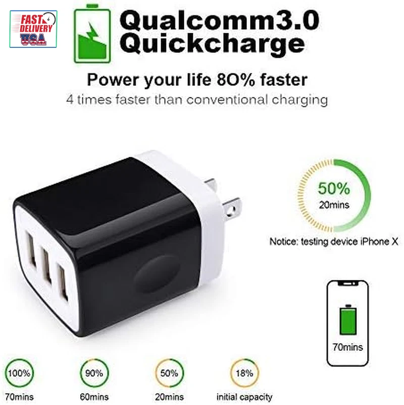Store New Arrivals Add to Favorite View Feedback Contact USB Wall Charger, 3-Port Travel Smartphone Quick Charger 2 Pack 3.1Am Block USB Adapter Power Plug Charging Station Box Compatible with Iphone 16/15/14/13/SE/12/11 Pro,Ipad,Samsung,Usb Plug Description Item model number PT-WC-20 Whats in the box 2 x Wall Mutilple Port Charger Adapter Connectivity technologies USB Mounting Type Wall Mount Color 3Port-Black Form Factor Compact and Portable Country of Origin China Connector Type USB Type C Other display features CE Compatible Devices Cellular Phones Item Weight 2.89 ounces Connectivity Technology USB Input Voltage 240 Volts Special features Travel Special Feature Travel Package Dimensions 5.04 x 4.33 x 1.34 inches Compatible Phone Models Samsung Included Components 2 x Wall Mutilple Port Charger Adapter Smart Port Design: 3 muti port can charge one tablet and two smartphone or 3 smartphones at the high speed, you can get 3 digital devices with 5V input charged at once for total efficiency, automatically detects your devices to deliver optimum charging speed. Charger: Output: DC 5V 3.1Amp; Input: AC 100V - 240V (U.S. & World Standard).Best replacement for original charger, work with any device with a USB port. Safe & Quality Reliable: The charger has protection system against over charging, over currents, and over heating. The charger will automatically stop charging when power is full,which can maximumly protect your device. Compatible with multi-species USB devices, Such as iPhone16/16 Pro/16 Pro Max/16 Plus, iPhone 15/15 Pro/15 Pro Max/15 Plus, iPhone 14/14 Pro/ 14 Pro Max/14 Plus, iPhone 13/13 Mini/13 Pro/13 Pro Max, iPhone12/12 Mini/12 Pro/12 Pro Max, iPhone 11/11 Pro/11 Pro Max, iPhone SE 1/2, iPhone X/XR/XS/XS Max, iPhone 8/8 Plus, Samsung Galaxy S24/S24 Plus/S24 Ultra/S24FE/S23/S23 Ultra/S23+/S22/S22 Ultra/S22+/S21 Ultra/S21/S20 Ultra/S20/Note 20/Note 20 Ultra/Note 10 +/S10/S10e/S10+, LG V60 V50, and More USB devices. Lightweight and portable design: allows for easy to store and convenient to put anywhere in your home, simply connect to the USB cable and plug to the wall, it very easy for you to take it out for travel or outdoor activities, You can share them with your family or friends. 3-Port Quick Charge 3.0 USB Wall Charger Adapter Cube 3.1A Home Travel USB Wall Charger Specification: Material: Plastic outer shell USB Output: 3 USB Port Input: AC100-240V 50/60Hz Output: DC 5V-3.1A Compatible With any USB-enabled devices -iPhone16/16 Pro/16 Pro Max/16 Plus -iPhone 15/15 Pro/15 Pro Max/15 Plus -iPhone 14 /14 Pro /14 Pro Max /14 Plus -iPhone 13 Pro Max /13 Pro /13 /13 mini -iPhone 12/12 Mini/12 Pro/12 Pro Max11/11Pro/11Pro Max/SE/ XR/XS/XS MAX/X/8 -iPad Air 2,iPad Pro, Mini 2/3/4/5, iPod Touch -Nexus 6P 5X, One-plus 2, One-plus One, HTC, LG, Nokia -Samsung Galaxy S24 S24 Plus S24 Ultra S24FE S23 S23+ S23 Ultra S22 S22+ S22 Ultra S21 FE S21 Ultra S21 Plus S21 S20 FE S20 FE S20 S10 S10e10+,Samsung tablets - Smart-phones,E-book Readers,GoPro,Bluetooth Speaker,Nook Hd+, and more Product Features 1.Mutl Port Design :Allow you charge your iPad/tablet and iPhone/smartphone at the same time, and charge speed up to 3.1 Amps, provides plenty power to 3 devices. 2.Fast charging: Three-USB Allows you to charger Three mobile devices simultaneously at high speed.Save more time. 3.Light and portable: This compact USB wall charger is designed to fit in your pocket, bag, or carry-on bag. 4.Multi-use: This charger works just as well as home as it does in the office or while travelling. 5.Using simple: Very handy to use, the small form makes it fit right in the standard socket, Pocket size, Compact, Portable, lightweight, durable, easy to take anywhere. 6.Safe and Reliable: Charging begins and ends automatically when the battery is full. Package List 2 x Wall Mutilple Port Charger Adapter(White) ABOUT US We offer the best prices around on high quality products. Our E-store includes media such as books, movies, music and games while offering electronics, toys, sporting apparel, clothing, tools, general home, garden items and more. SHIPPING We are always working hard to ensure your package arrives as soon as possible. Please understand that some factors like weather, high postal traffic, and the performance of shipping companies are outside of our control. We offer free shipping to the lower 48 states and ship within 2 business days of payment, usually sooner. We do not accept P.O. Boxes. Please provide a physical address. For shipping outside of the continental USA, we only use eBay's Global Shipping Program.The item is shipped to KY and then sent to the rest of the world. International customers are responsible for all duties and taxes. Continue to check out in order to calculate costs for shipping the item to your country. Messages regarding eBay's Global Shipping Program MUST be directed at eBay EXCLUSIVELY. RETURNS We offer a 30-Day Return Policy on items which you are not completely satisfied with. You have the option for a full-refund or an exchange of the item. No returns are available on items shipped outside of the USA. PAYMENT We accept PayPal. CONTACT US This page content is yet to come Please ad us to your favorite seller and visit again later Thank You CUSTOMER SATISFACTION We try our very best to make sure every customer is completely satisfied. If there's a problem, message us! We're happy to help. WE ACCEPT Copyright © 2021 AutoDS. | All Rights Reserved