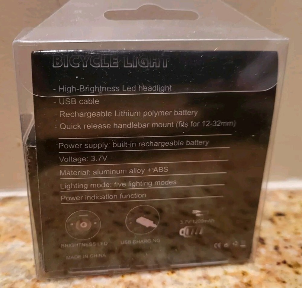 XPG Bicycle Headlight Quick release Brand New in box USB charging High brightness LED RECHARGEABLE BATTERY Five lighting modes