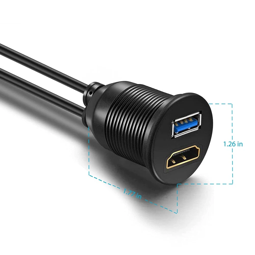 Store New Arrivals Add to Favorite View Feedback Contact USB3.0 and HDMI Mount Cable – USB3.0 and HDMI Extension Flush, Dash, Panel Mount Cable, for Car, Boat, Motorcycle (3 Feet) Description Item dimensions L x W x H 7 x 1 x 7 inches Color black Product Dimensions 7 x 1 x 7 inches; 4.8 ounces Country of Origin China Connector Type HDMI, USB Type A Compatible Devices 充电适配器 Manufacturer OBVIS Is Discontinued By Manufacturer No Specific Uses For Product TV, PC, Laptop, Cell Phone, Camera, GPS, DVD Player Size 3 Feet Dash Ports Flush Mount 1 X USB 3.0 & 1 X 4K HDMI Extension Cable ***NOT CONVERTER CABLE*** HDMI and USB3.0 extension cable with USB Input for vehicle, marine, bike, motocycle & etc Come with accessories such as screws, braceket, flush mount components & lid for installation on dashbaord or other surface Connects devices that use USB Type A ports and HDMI ports Diameter X Height: 1.26" X 1.77", easily snap in 28 to 30 mm hole, 3 feet - 1 meter long cable ***This is an extension cable of HDMI & USB 3.0 NOT a convertor of USB to HDMI*** Product Description STANDARD 3.0 USB and HDMI FLUSH MOUNT FEMALE TO A MALE USB Easy Installation Easy to install, with most models requiring only a small hole to be drilled into the surface where they will be installed. Features: Water & dust resistant – Comes with water & dust protection kit, designed to be water & dust resistant. Compatibility – Comes with USB 3.0 and HDMI ports are compatible with devices with these inputs such as smartphones, tablets, laptops, TVs, audio players and etc. Durability – it is made with high-quality materials that are designed to withstand repeated use and resist wear and tear. Fast charging – USB 3.0 port supports fast charging, allowing your devices to charge quickly and efficiently. Flush-mount Design Sits flush with the surface it is installed into. Neat, sleek & professional. Wide Range of Applications Car, truck, yacht, boat, bike, office space, workstation, home, hospitality & retail. Water & Dust Resistant Comes with water & dust protection kit ABOUT US We offer the best prices around on high quality products. Our E-store includes media such as books, movies, music and games while offering electronics, toys, sporting apparel, clothing, tools, general home, garden items and more. SHIPPING We are always working hard to ensure your package arrives as soon as possible. Please understand that some factors like weather, high postal traffic, and the performance of shipping companies are outside of our control. We offer free shipping to the lower 48 states and ship within 2 business days of payment, usually sooner. We do not accept P.O. Boxes. Please provide a physical address. RETURNS We offer a 30-Day Return Policy on items which you are not completely satisfied with. You have the option for a full-refund or an exchange of the item. No returns are available on items shipped outside of the USA. PAYMENT We accept PayPal. CONTACT US This page content is yet to come Please ad us to your favorite seller and visit again later Thank You CUSTOMER SATISFACTION We try our very best to make sure every customer is completely satisfied. If there's a problem, message us! We're happy to help.